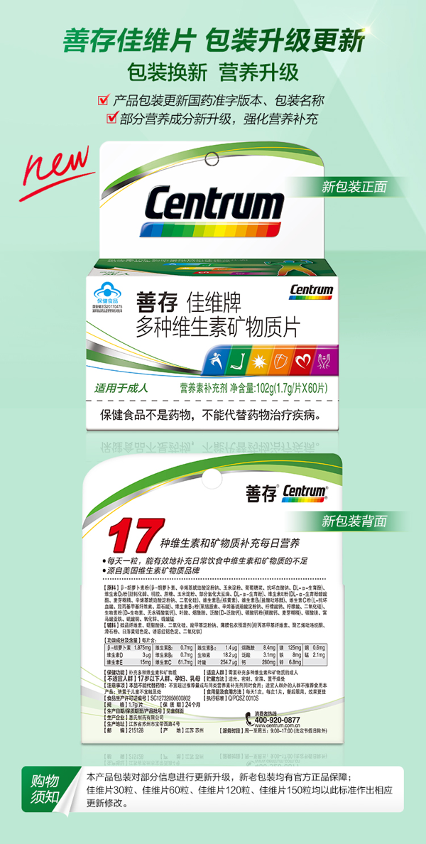善存是美国品牌,由世界500强惠氏出品,已成为家喻户晓的健康品牌,市场份额超过30%。惠氏善存佳维片能有效地补充日常饮食中维生素和矿物质的不足,其含全面抗氧化营养素,能帮助身体抵抗细胞的自然老化,具有国际领先的微囊技术,不伤害肠胃。