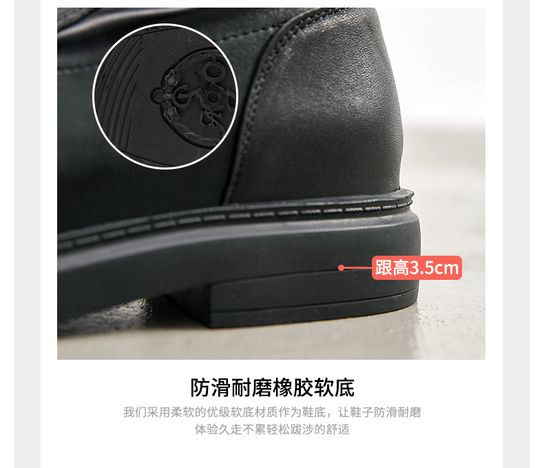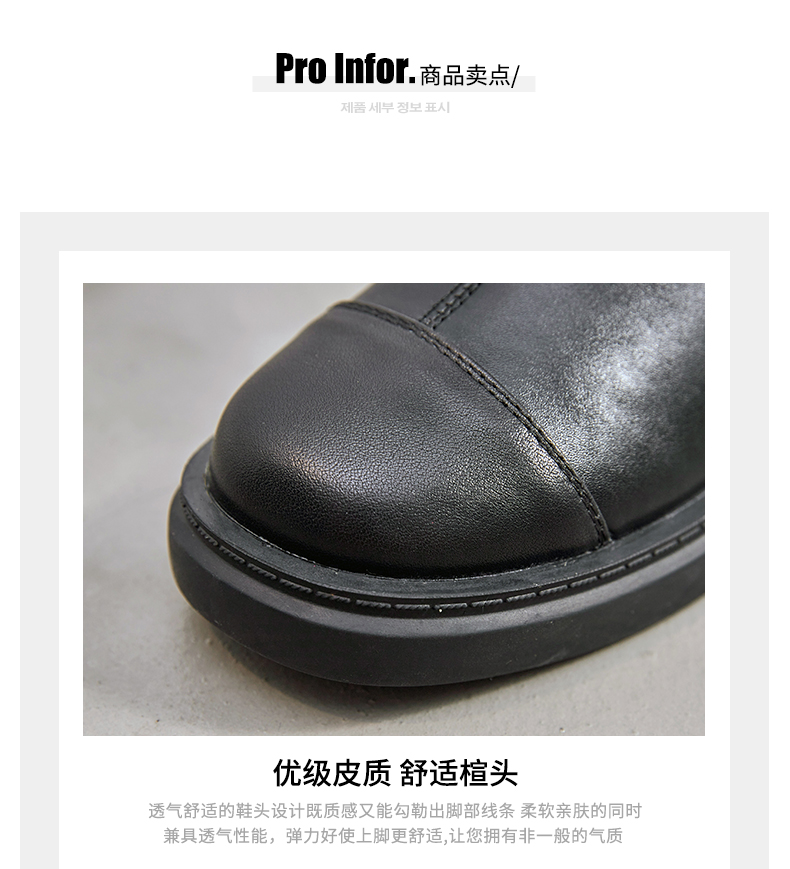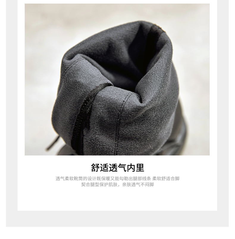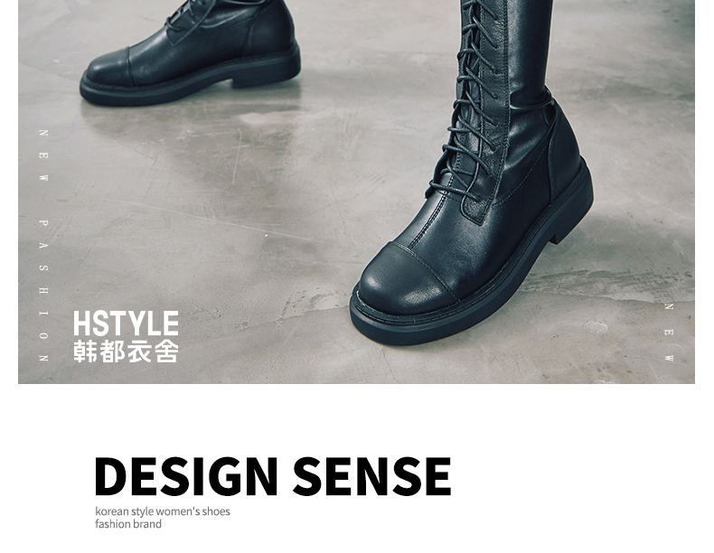 这款韩都衣舍马丁靴的外形相对简洁,鞋面使用牛皮真皮材质,柔软亲肤的同时兼具透气性能,持久耐穿。很多细节都做了优化,外观挺括圆润,上脚柔软舒适,一体成型的大底,不会开胶分层,同时也更加柔软,行走中较低舒适不累,时尚百搭。