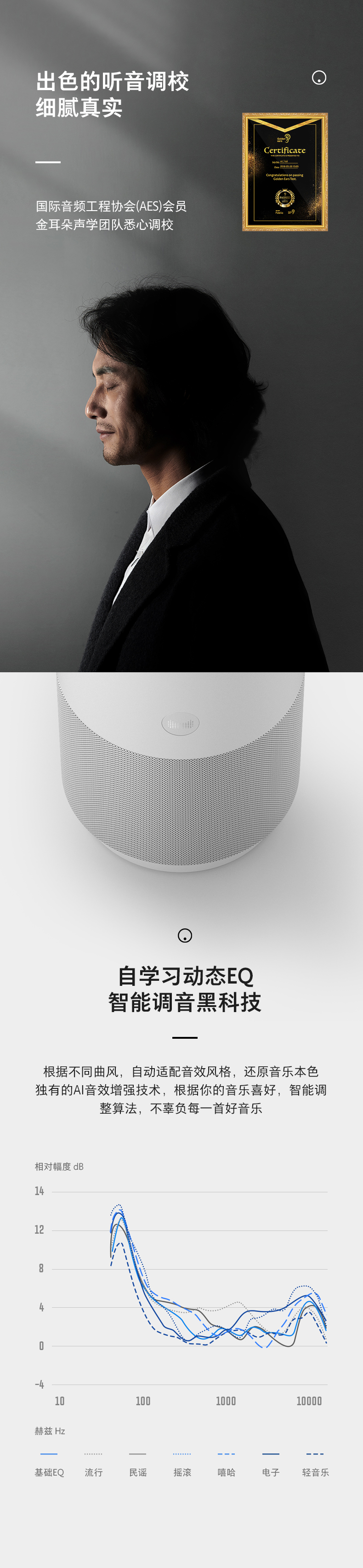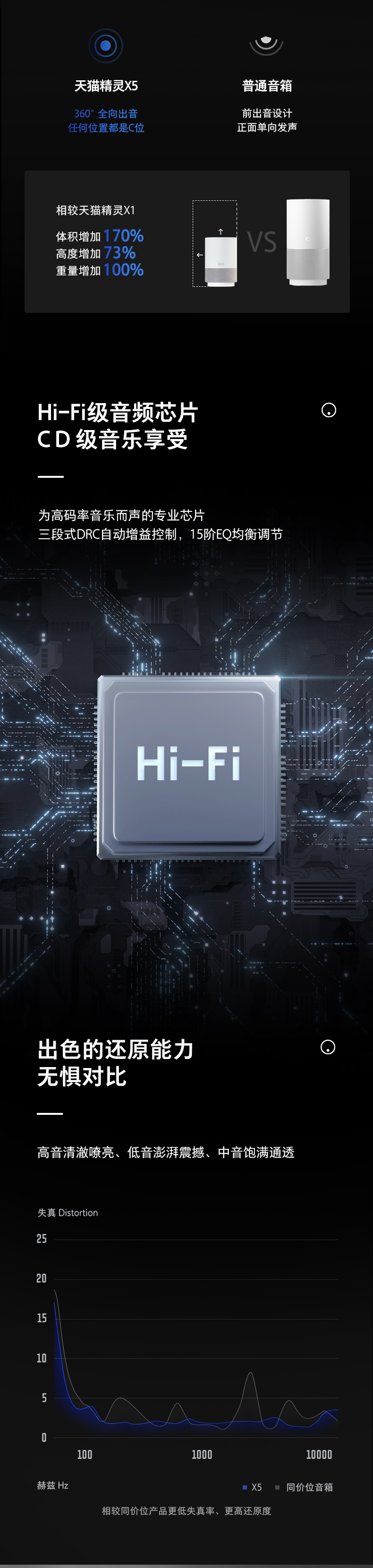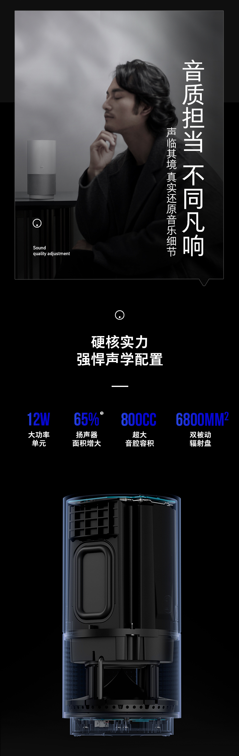 具备800cc超大音腔,整体体积相比X1增加170%,搭配2.25寸的12W钕铁硼单元和HiFi级音频芯片,再加持金耳朵声学团队专业调教的自学习动态EQ,为你带来卓越的音质体验。