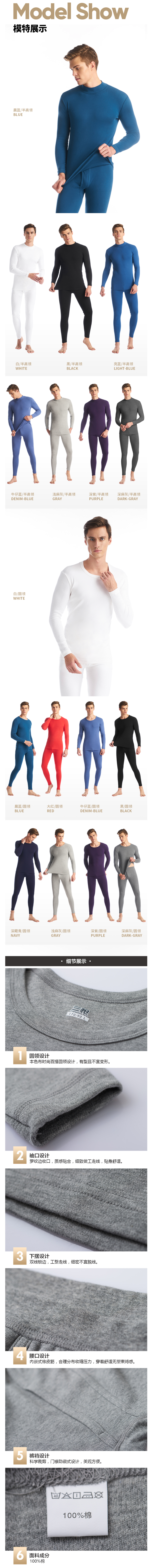 这款三枪男秋衣秋裤套装,采用100%长绒棉面料,并经过精梳工艺处理,手感更柔软细腻,吸湿透气,不易起球起静电,穿着舒适。加厚高克重设计,达450g以上,保暖效果更好。