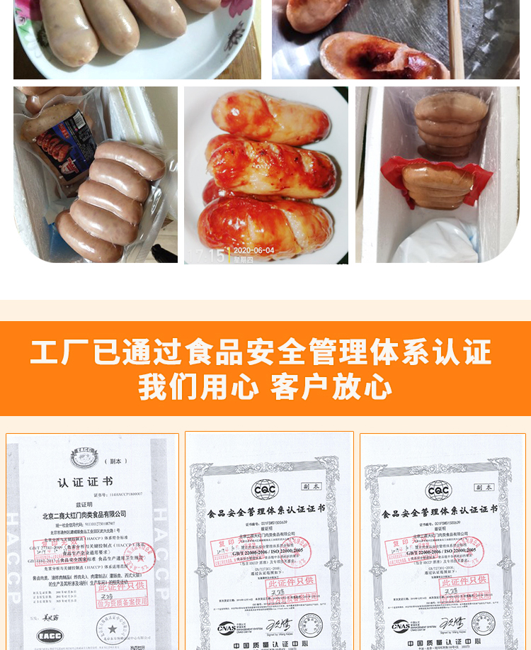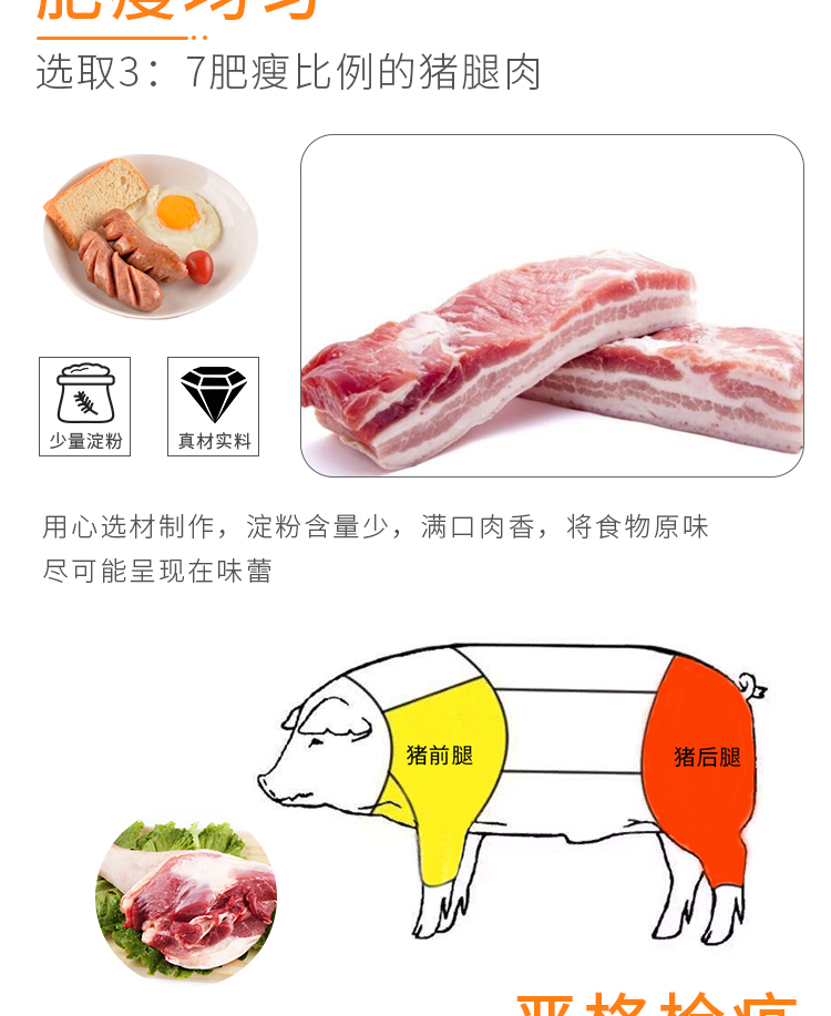原味、黑胡椒两种口味,4斤重,历史新低价。这款大红门火山石烤肠,精选生态养殖生猪猪后腿肉、混合鸡肉等制作而成,猪肉含量≥80%,满满都是肉,少淀粉肉质紧致,手工灌肠,外酥内嫩。无论是微波炉、香煎,还是炒菜都很棒。规格:500g/袋。