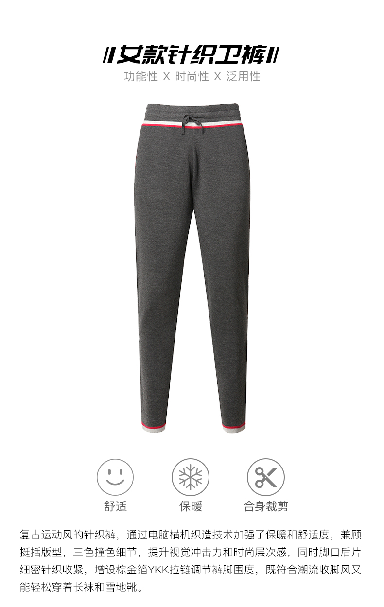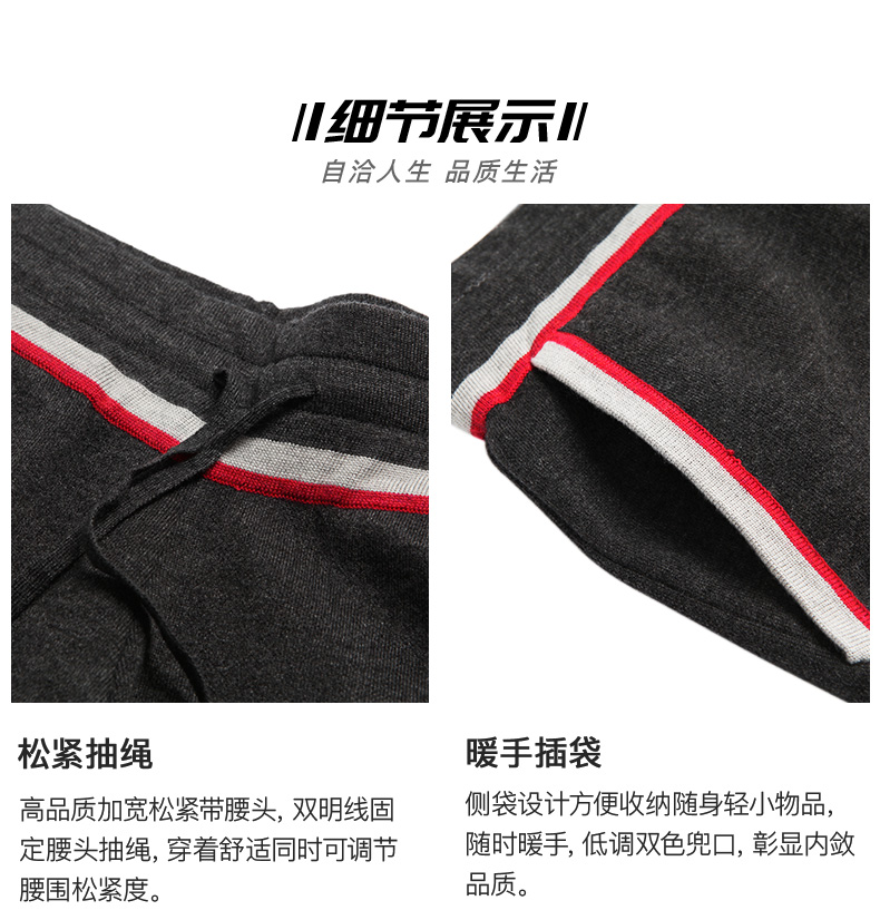 在款式上,运动修身版型,经典休闲复古运动风。高品质加宽松紧带腰头,双明线固定腰头抽绳,穿着舒适同时可调节腰围松紧度。
