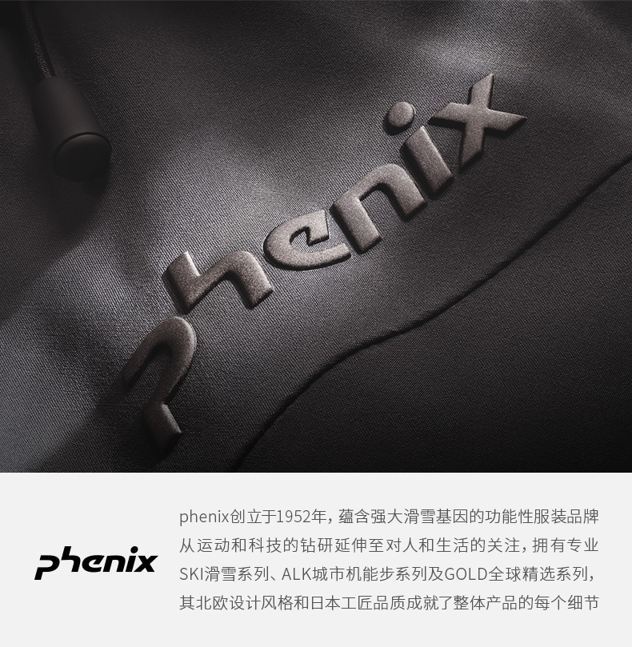 经过六十多年的发展,Phenix成为拥有滑雪基因的高端功能性服装品牌,包括:Ski滑雪(专业,顶级)、步系列(日潮机能,顶级)、Goid全球精选(时尚户外,中高端)三个产品线,其中产品设计团队分布在法国、韩国和日本,而工艺与打板主要在日本完成,兼具北欧设计风格与日本的工匠品质。