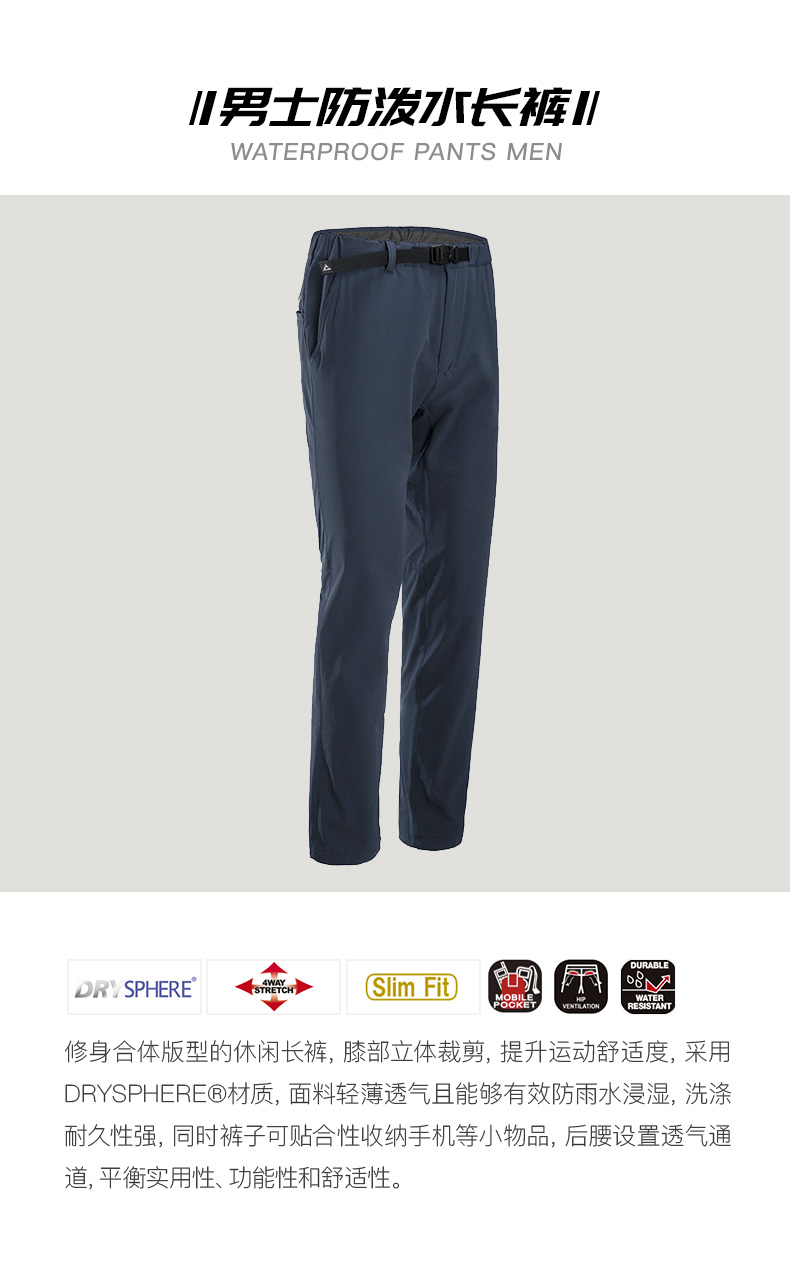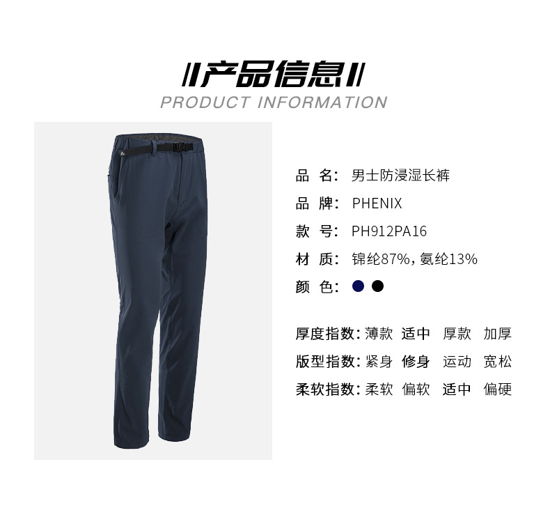 这款Phenix PH912PA16 男防泼水运动速干裤,属于Goid全球精选系列,采用DRYSPHERE⑧材质的轻量面料制成(87%尼龙+13%氨纶弹),耐磨抗撕裂,能良好的防雨水浸湿,同时还有四面弹特性,增加了舒适性和运动自由度。