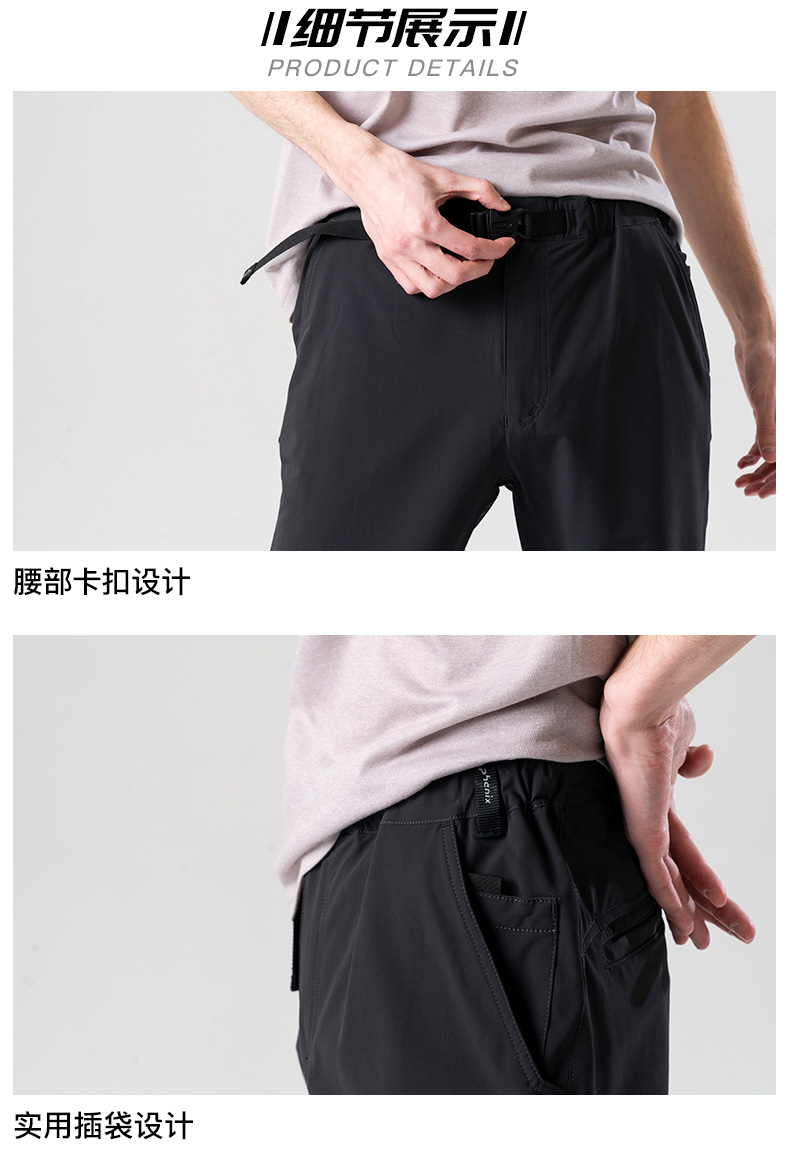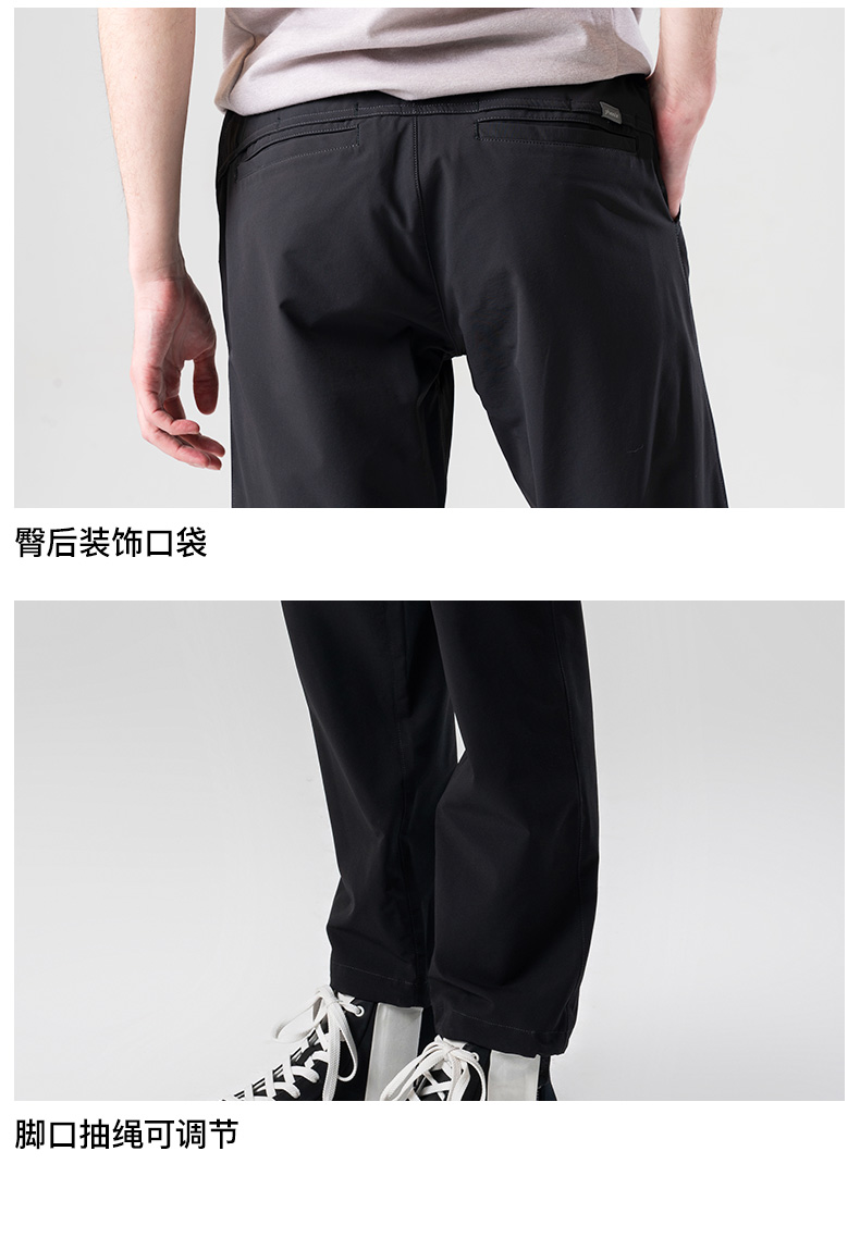 在款式和细节上,修身合体版型,膝部立体剪裁,给弯曲时预留活动空间,上身会非常合体。后腰部有透气孔设计,口袋带拉链,置物更安全。裤腰自带腰带插扣,可自由调节。