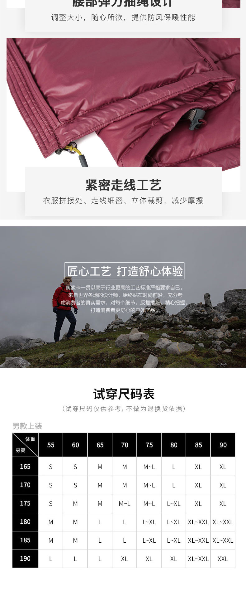 蓬松度高的羽绒服,可以穿的又轻又暖。在保暖效果上: