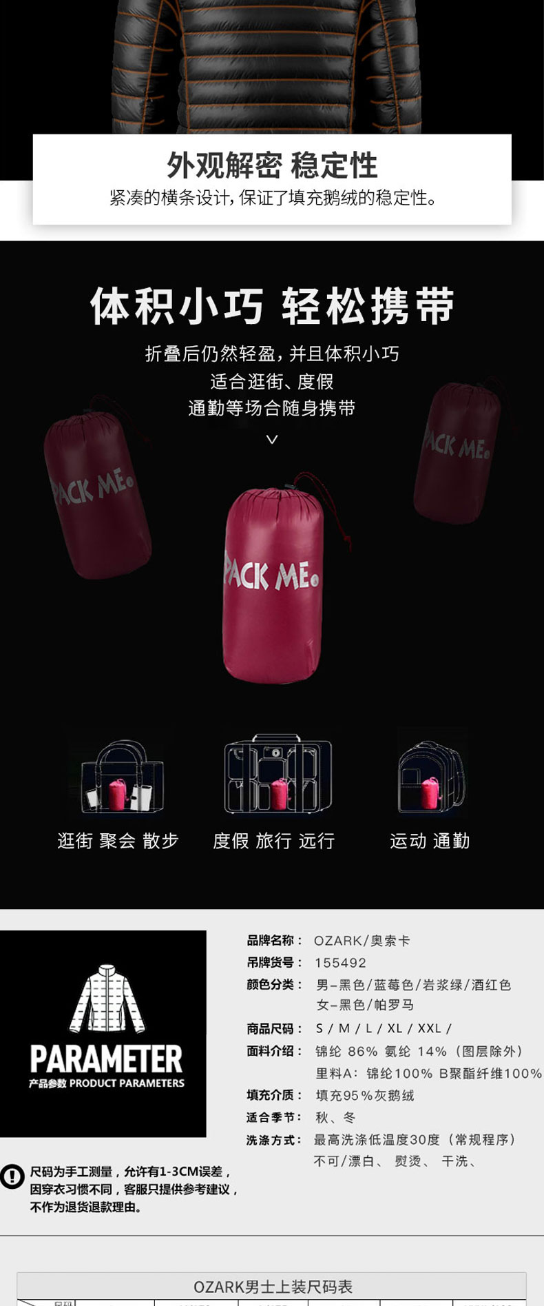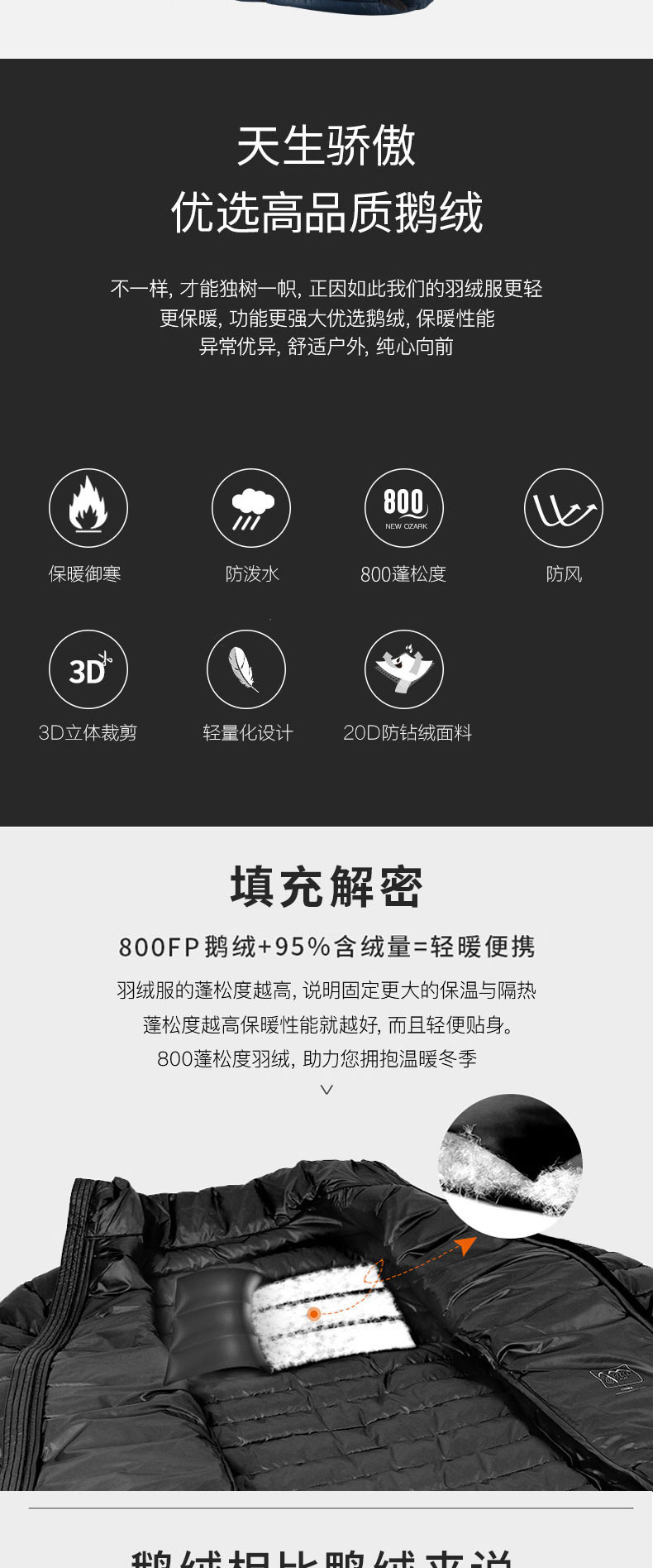 800蓬 95%白鹅绒含量 更轻更薄 保暖透气。