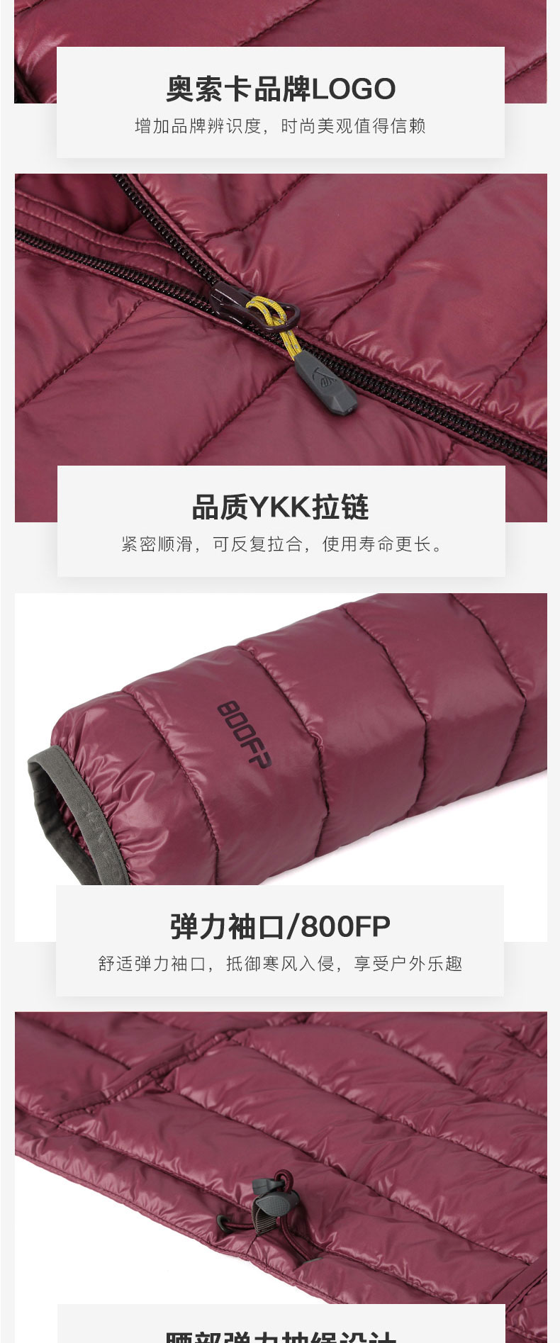 男女三款可选,有断码现象,此前最低498元。奥索卡是中国最早的户外品牌,中国户外运动的先驱者。这款羽绒服是高蓬超轻羽绒服,填充800蓬高蓬鹅绒,含绒量为95%,男款180码充绒量100克,外层是高密尼龙面料,弹性松紧袖口和腰绳可防灌风,靠谱的YKK拉链。