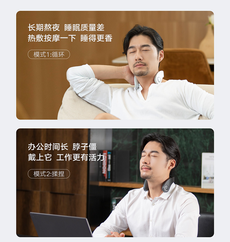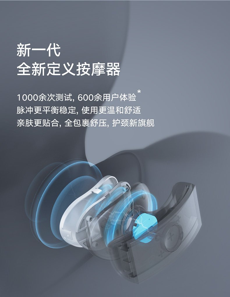 采用3个浮动按摩头,包裹式按摩贴合无间隙,L型垂挂设计,佩戴舒适不惧晃动。仿真脉冲按摩,模拟揉捏、推拿、指压四种按摩手法,8级力度可调,40℃双效热敷,促进血液循环、缓解疲劳疼痛。还增加了智能坐姿提醒功能,内置多轴陀螺仪,低头超过20°健康区域时,设备会发出振动提醒,时刻提醒端正坐姿。改掉不良习惯。
