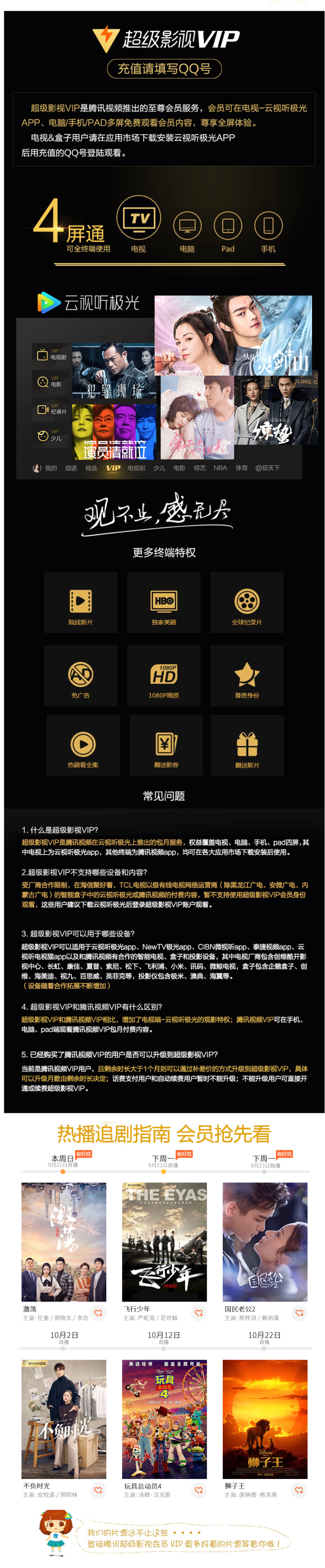 腾讯视频超级影视VIP(正价488元/年):支持 手机、平板、电脑、电视TV
