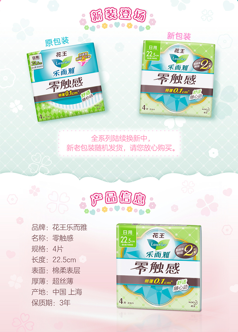 此款为零触感系列卫生巾,超薄至0.1cm,加速度瞬吸2片量,适合夏季使用的卫生巾,柔爽棉质网面,透气不闷热,巾身柔软贴合,运动自在顺心。