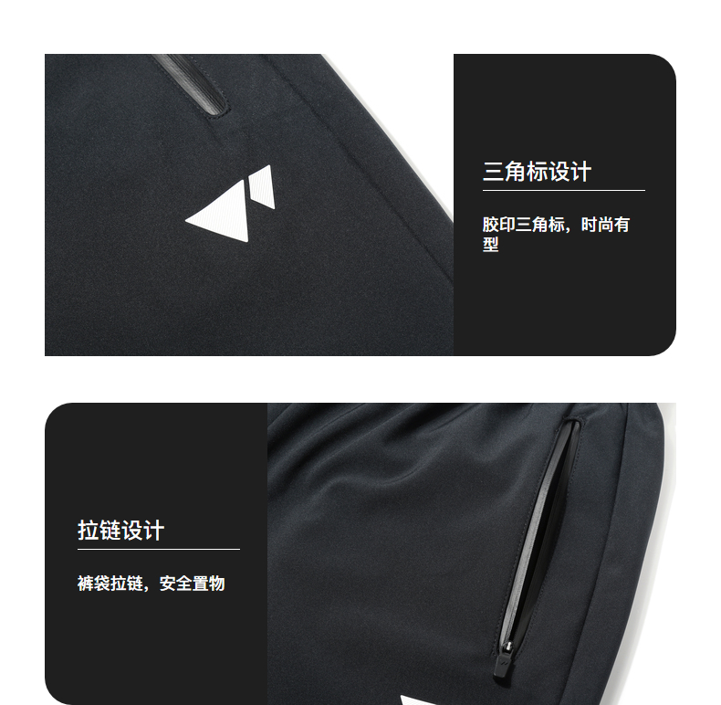 弹力松紧+抽绳组合的裤腰,穿脱方便,大部分身材的人都能穿。两侧插袋有拉链,置物安全,还有虹膜覆盖,更能防水。