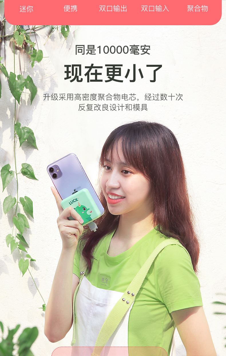 10000mAh容量,,造型可爱。小巧便携可以带上飞机。