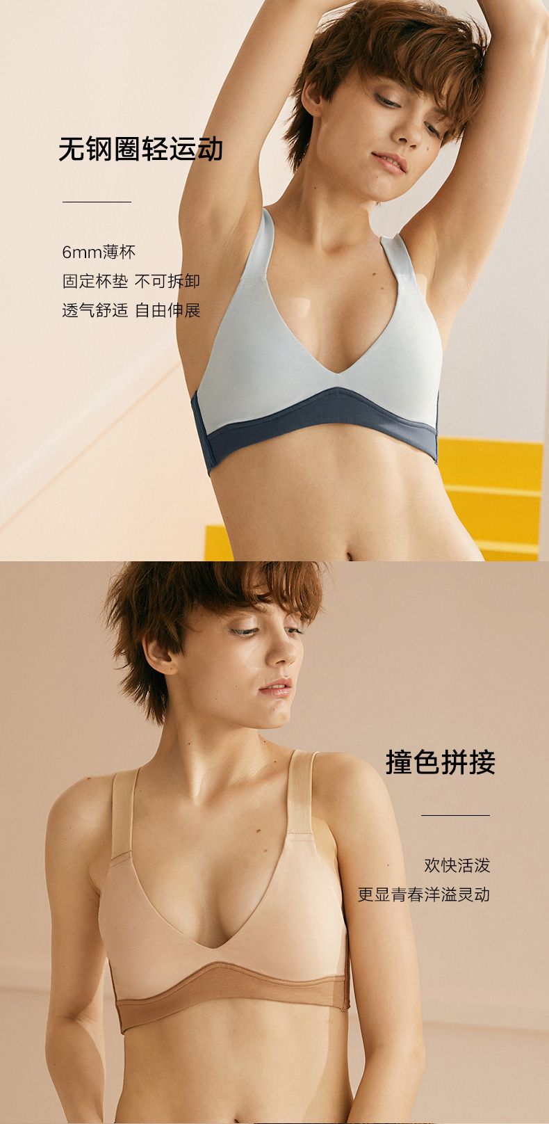 3色可选。棉质生活,背心式长三角,轻薄舒适透气,舒适面料,深V无钢圈聚拢性感。