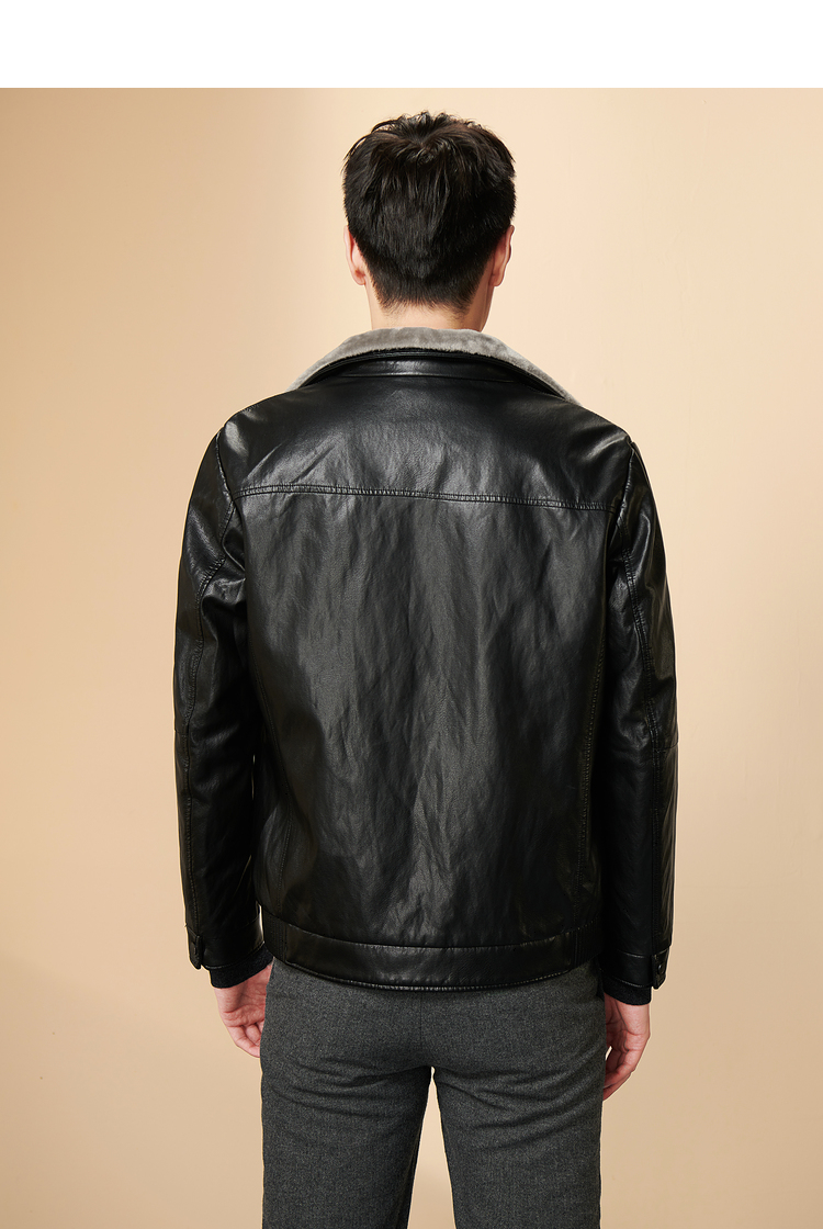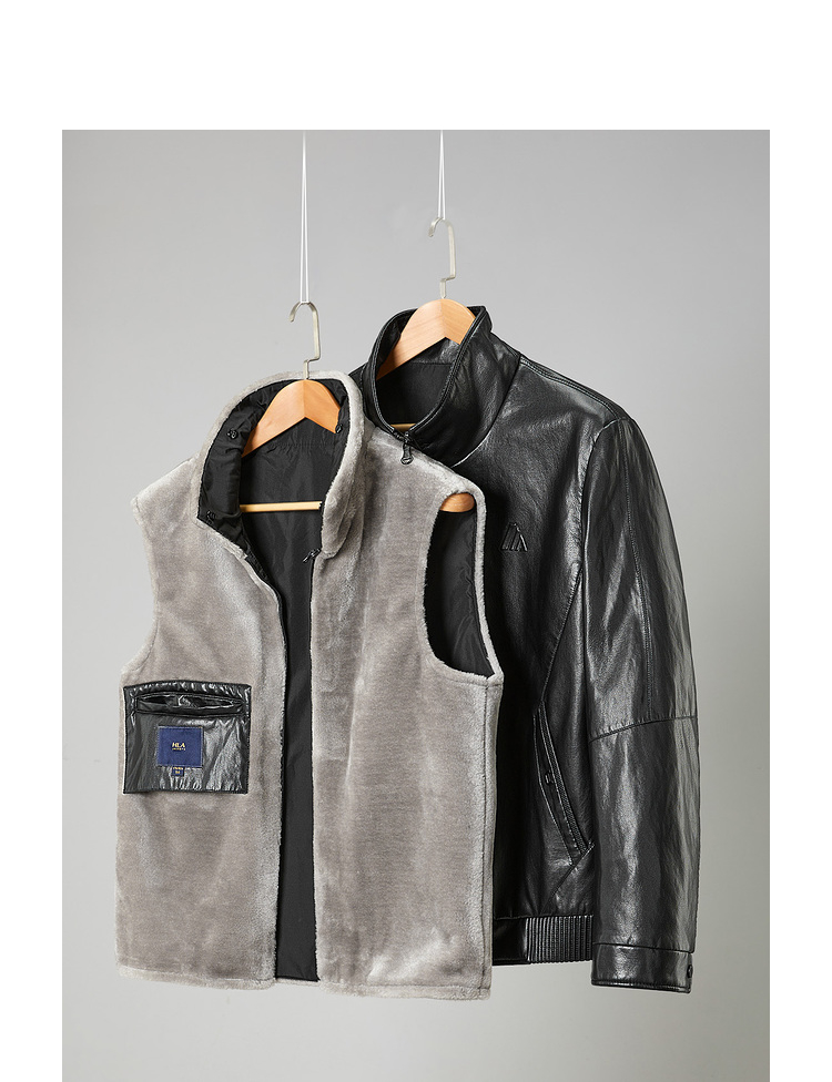 这款海澜之家夹克,外层是聚氨酯材料,也就是PU,面料经过涂层工艺处理,手感柔软富有光泽,搭配内里加绒设计,抗风又保暖。外层皮衣与毛绒内胆可拆卸,适合春秋冬三季穿着,内胆也可直接当做毛绒马甲,一衣多穿。