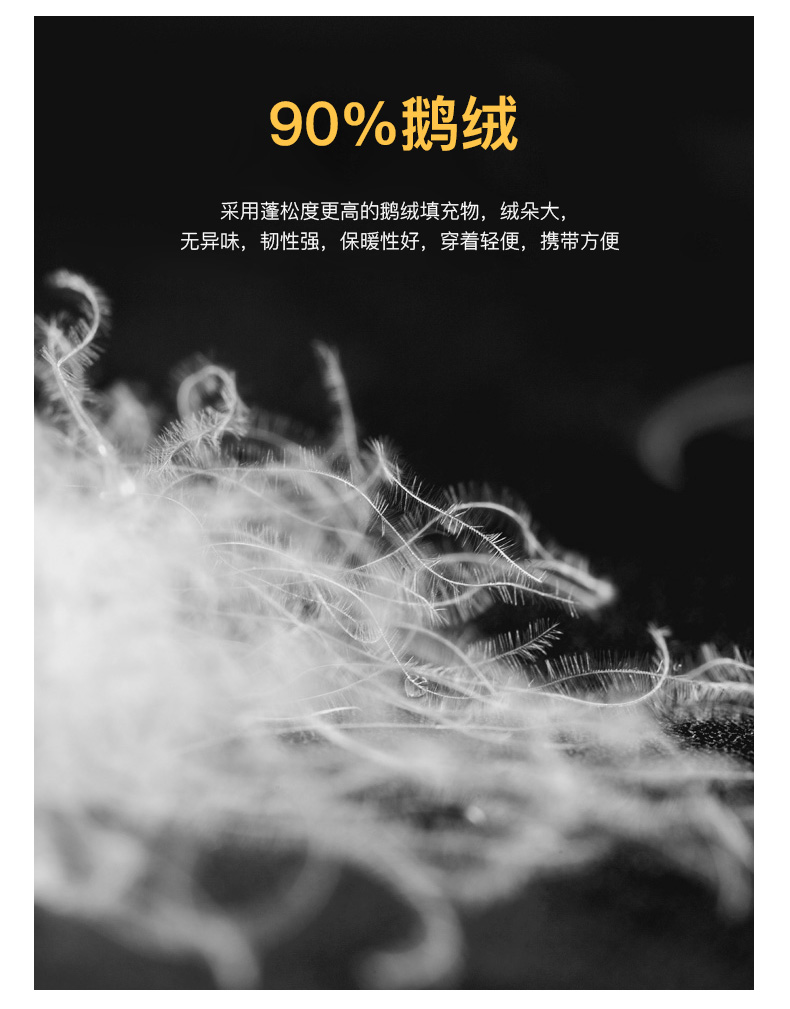 外表为高密超纤面料,拥有防风防泼水效果,同时有效防止钻绒。立体裁剪工艺,能很好修饰身材,挺拔有型。