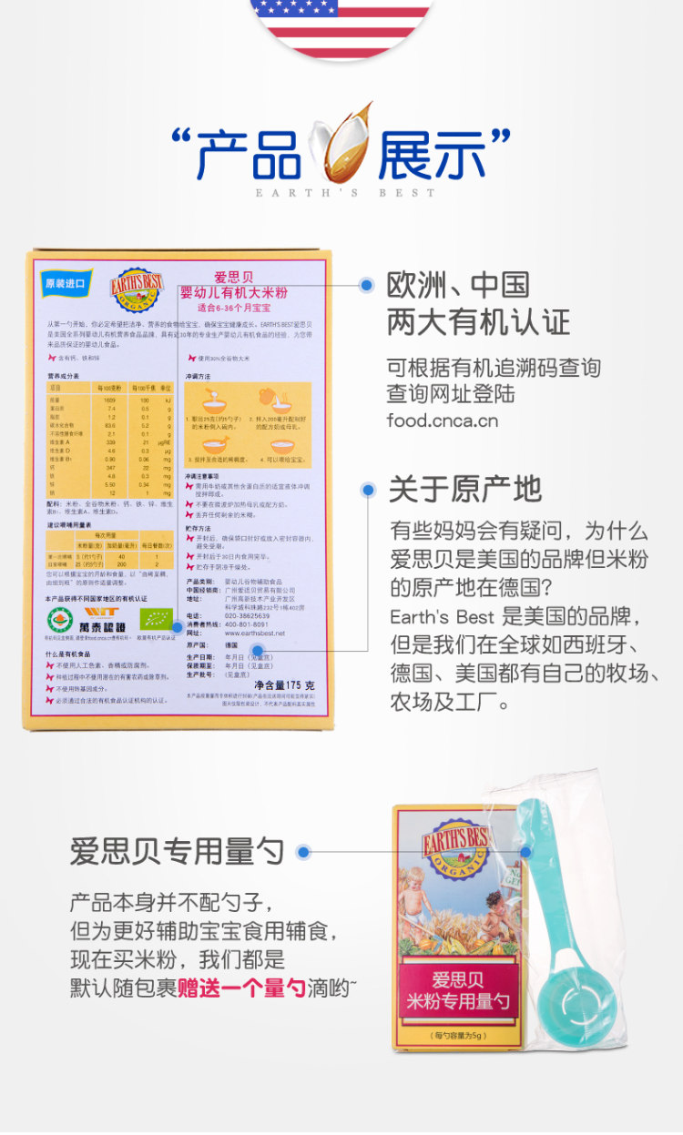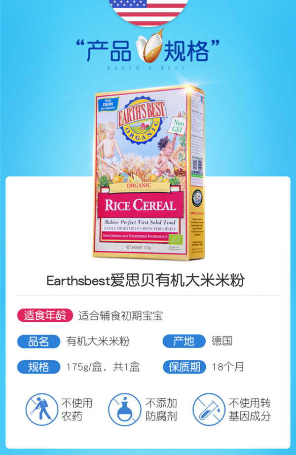 天猫earthsbest旗舰店,¥65元 狂欢价,拍5件325元-40元跨店满减-30元店铺满减-20元优惠券,-20元美食品类券=215元 到手价,送小鹿不倒翁1个+皇冠奶粉盒+湿巾3包+米粉量勺+辅食弯勺,原味此价,还有大米味、小麦味、燕麦味、玉米味等口味,专注有机婴儿辅食33年,千万宝妈信心之选,口感细腻易进食,高铁优化好配方,德国原装进口,无糖+单一谷物,强化铁+多维营养,微晶片状易冲泡,谷物原香。