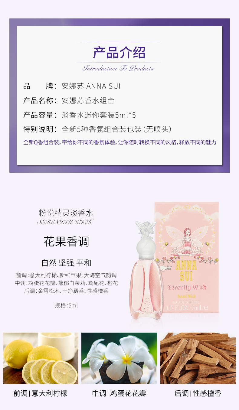 =263元 到手价,一套满足你的少女心,包含粉悦精灵,筑梦人鱼,筑梦天马,许愿精灵,幸运精灵5款淡香水,便捷装方便随身携带,还可定制心意贺卡。