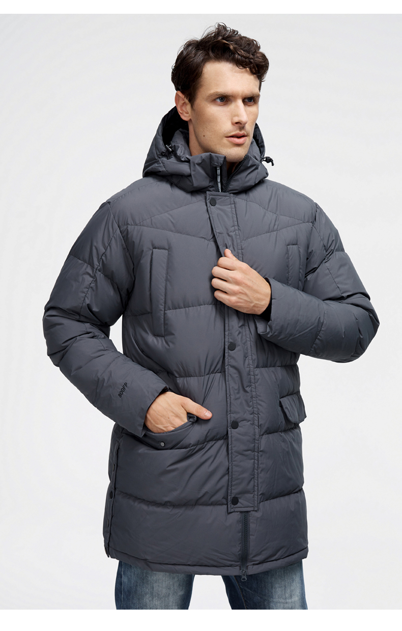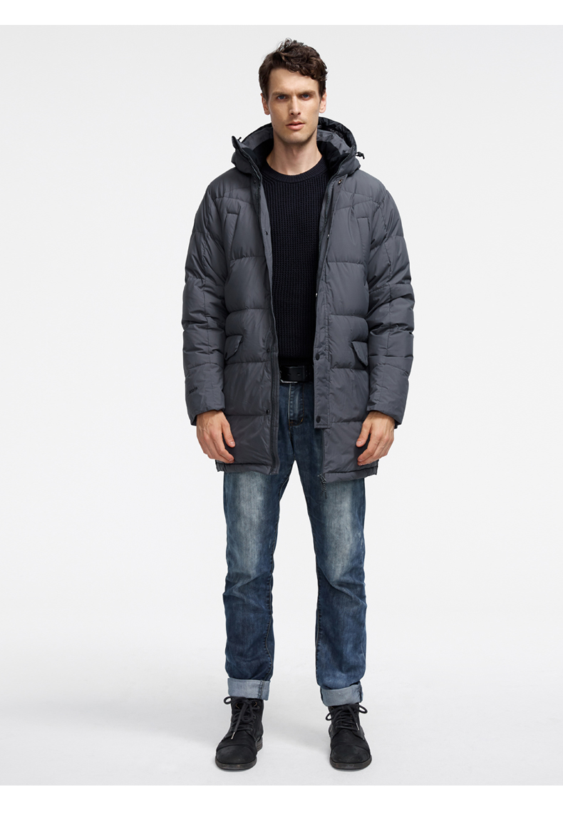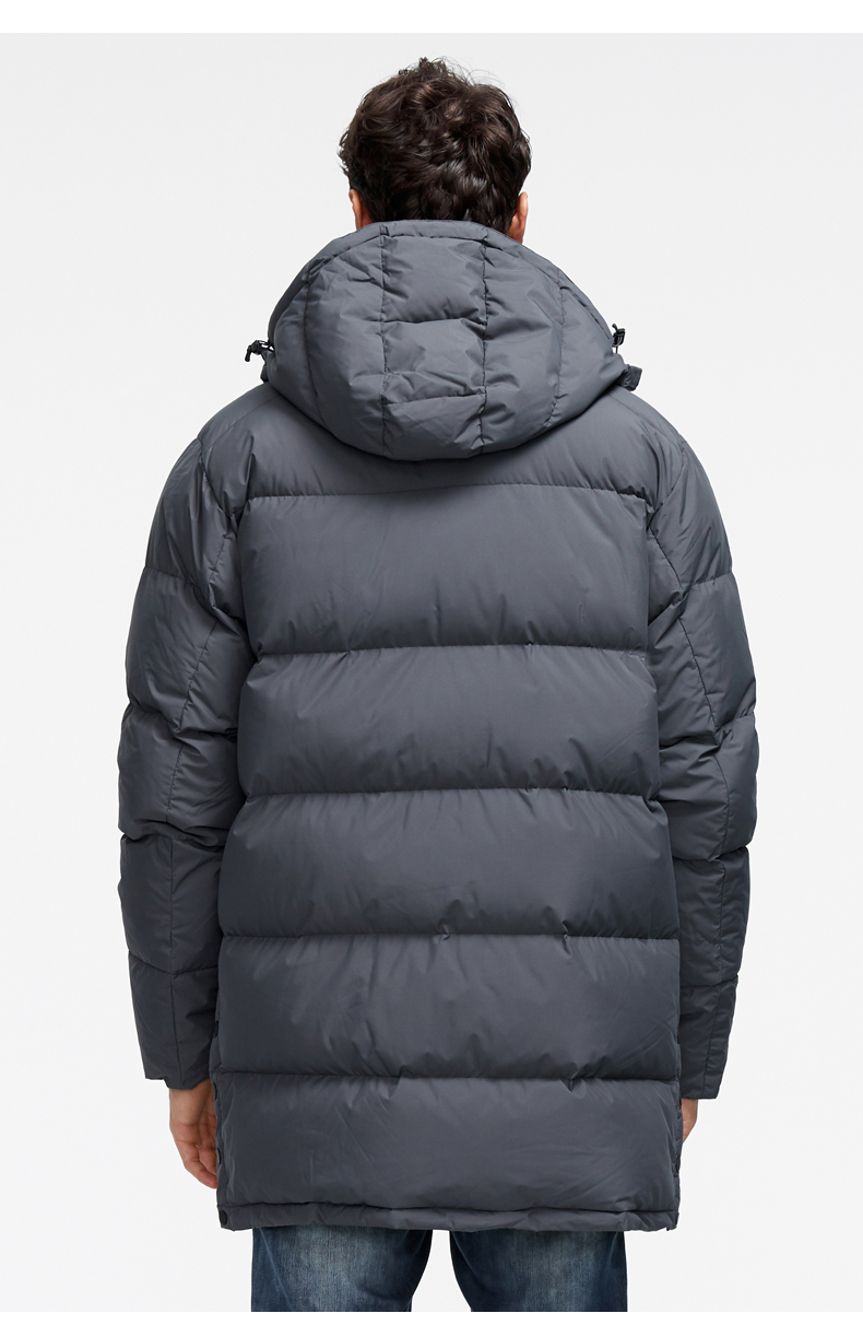 这款君羽寒凛男中长款羽绒服,属于酷寒款,可抗-15℃~-30℃,内里填充了800蓬90%鹅绒,L码充绒量达221克,属于重装羽绒服了额,外层是东丽30D高密度锦纶面料,防风防雨雪。直筒微收腰版型,长度过臀及大腿。