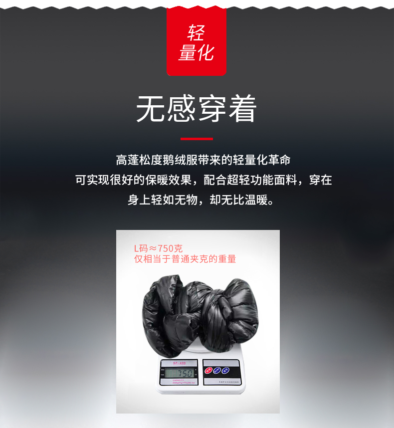 「鹅绒」800蓬鹅绒成本约是普通鸭绒的10倍,没有鸭毛的腥味,保暖效果更好:「221克 800蓬鹅绒」≈「287克 389蓬普通鹅绒」≈「409克普通鸭绒」。