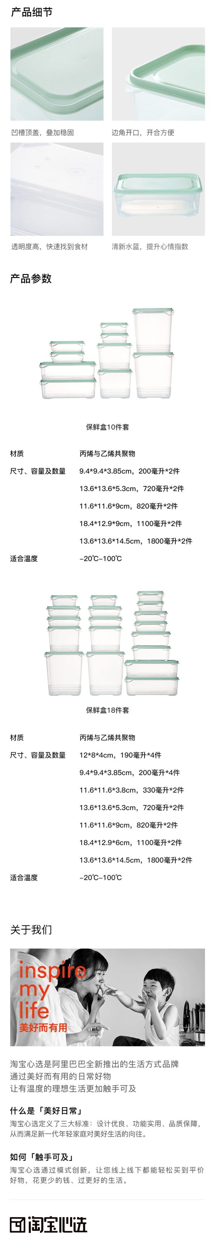 这款淘宝心选保鲜盒,使用食品级PP塑料材质,安全无毒、低温不破裂,适用于冰箱储物,可微波加热(尽量避免吧),能适合的温度:-20℃~100℃。