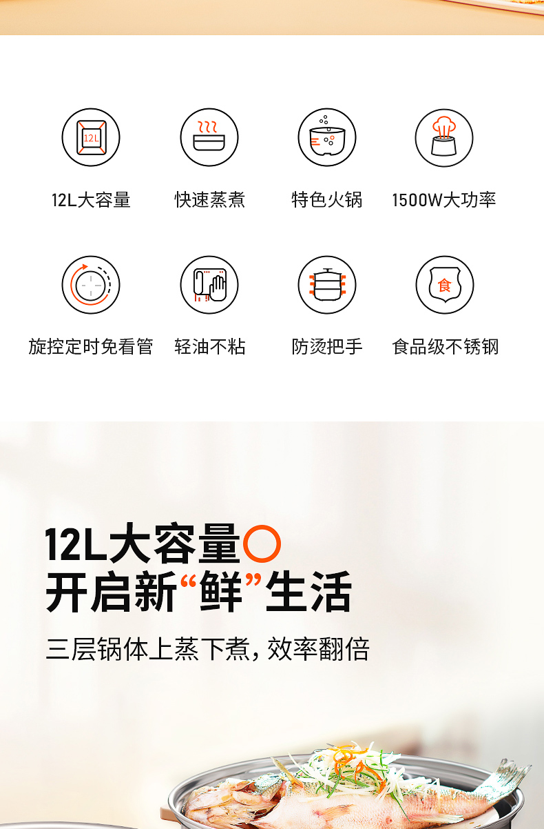 天猫九阳合千润专卖店189元,可领40元优惠券,实付149元到手,双层款此价,容量8.5L,还有三层款可选,12升大容量。九阳家用多功能电蒸锅,能蒸能煮,支持旋转定时,特色火锅煎制不粘锅,少油盐,高温蒸汽,蒸出营养健康。