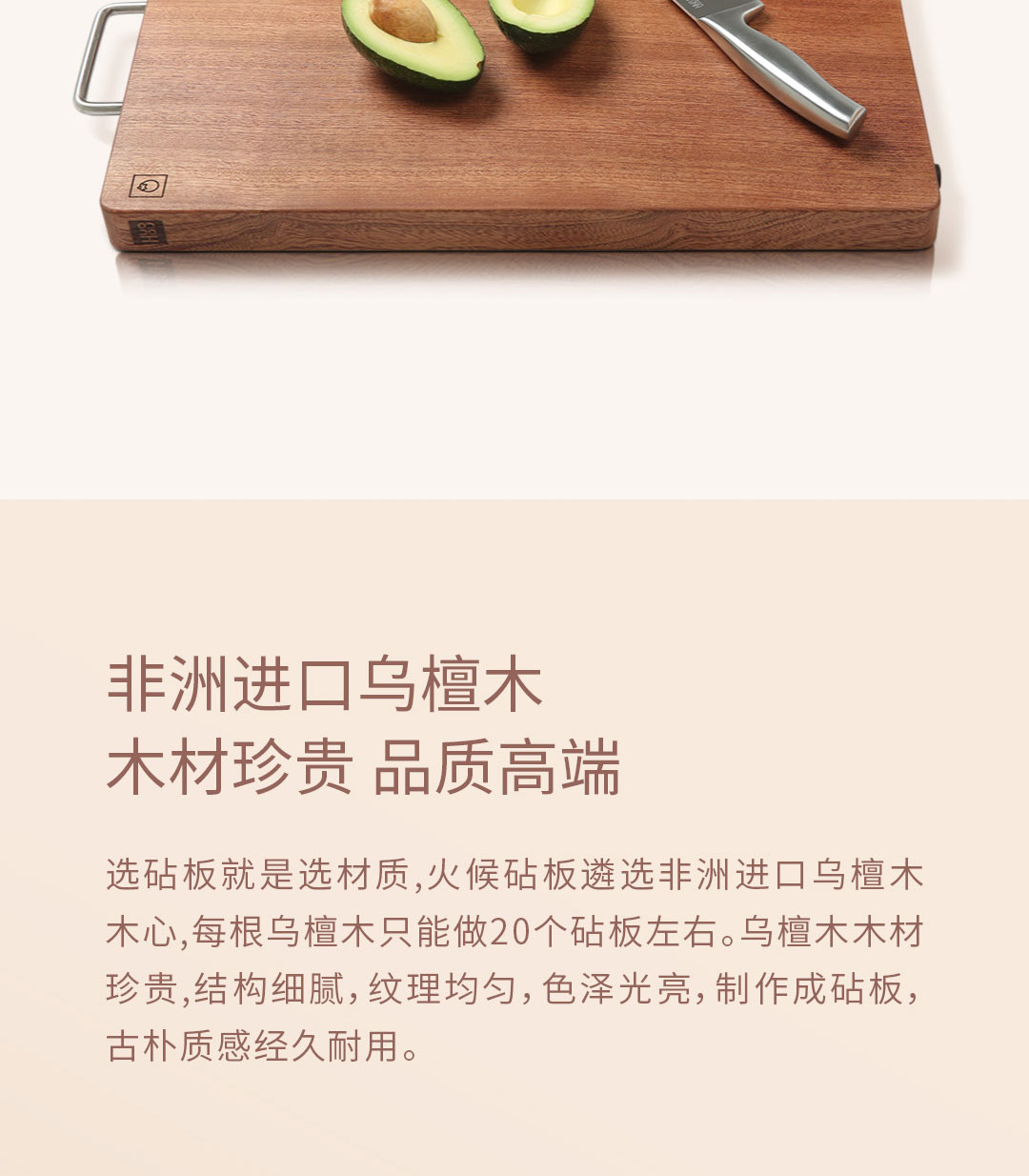=89元 到手价,规格为36*24*2.5cm。这款火候砧板选用非洲进口乌檀木的木心制作,其结构细腻、纹路均匀、色泽光亮,制成的砧板具有古朴的质感,经久耐用,整木无拼接、无缝隙,所有的配件无螺丝,不易藏污纳垢,易清洗,易打理。