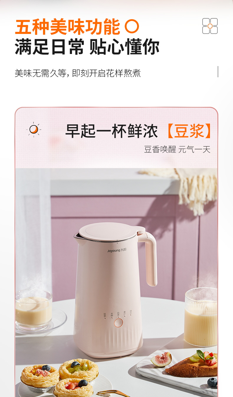 天猫九阳中卓鼎专卖店339元,下单立减70元,可领70元优惠券,实付199元到手,无需泡豆 自动熬煮 破壁免滤。赠运费险+正品保证,家用全自动智能豆浆机,5大功能菜单:豆浆,米糊,奶茶,果汁,烧水,300ml容量体积小巧,适合1-2人饮用,不会造成打多了喝不完浪费的情况,无需泡豆可直接打,破壁免滤直接喝,口感倍浓,立体加热,快速制浆,细腻无渣免过滤,支持智能预约,还防糊防溢。