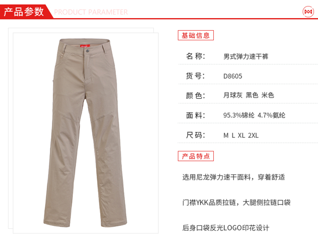 在细节上,这条裤子的裤脚和主要走线都是双线缝纫,细密牢固,走线整齐。前档门襟使用日本YKK拉链,后身口袋的LOGO是反光的。总的看,这款裤子速干舒适、轻便耐磨,适合春夏秋三季,比较热的天气,日常通勤、郊游和户外运动穿着。