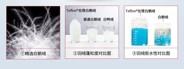 所谓拒水鹅绒,就是在鹅绒表层覆盖一层防泼水高分子组织,即使在潮湿环境下也能保持原有80%的保暖性;