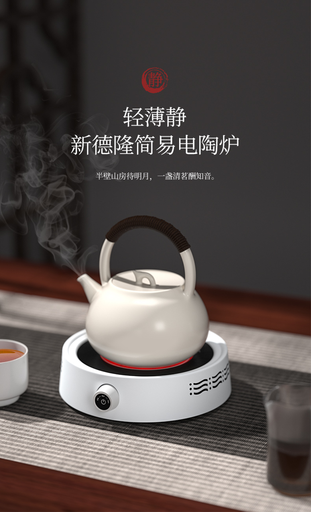 新德隆 家用迷你电磁炉,800w功率,2s快速升温,告别电磁辐射无噪音,一炉多用不挑炉具,玻璃、紫砂、铁壶、铜壶等等都能用,无极旋钮调控,微晶面板,耐磨耐刮,防水防爆,还原炭火煮茶,享受高品质生活。