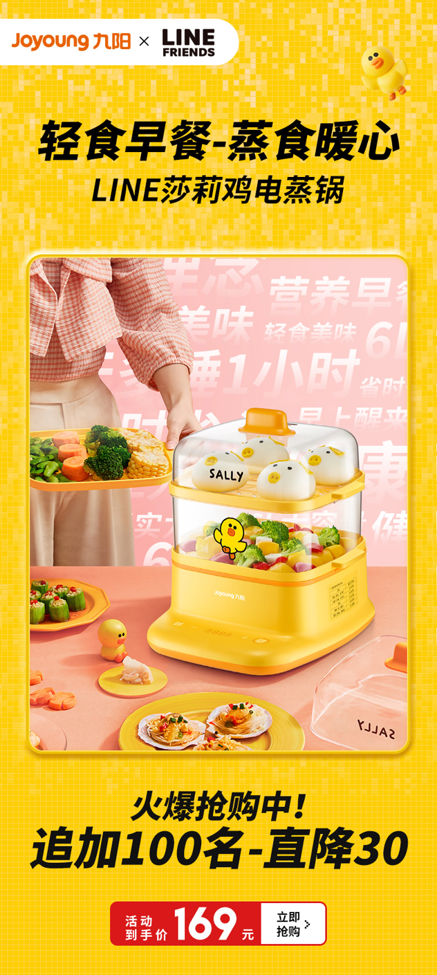 天猫九阳中卓鼎专卖店179元,可领50元优惠券,实付129元到手,小降10元,下单赠硅胶防烫蒸布*2片,非联名款此价,加20元可买莎莉鸡的联名款(仅外观颜色不同)。