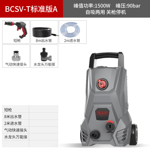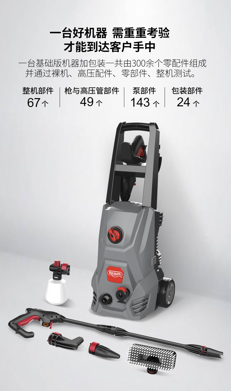 这款莱姆高压洗车机,包含主机、8m出水管(自吸版),2米进水管、奶嘴接头、快速接头、水龙头接头、喷水短枪、自吸沉头。经过ISO9001质量认证、美国安全认证、德国产品安全性认证、欧盟强制性认证标志、电气产品电磁兼容认证、加拿大标准协会认证,品质靠谱无忧。