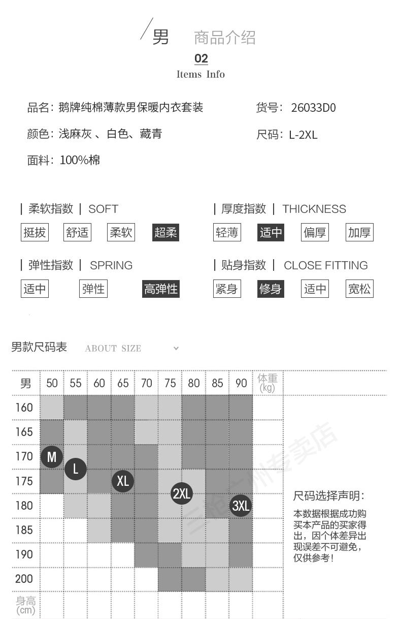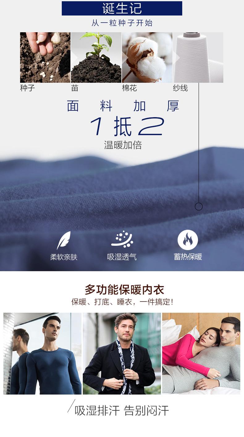 这款保暖套装采用100%精梳棉面料,比普通棉更亲肤柔软,吸湿透气性好,不易闷热捂汗,穿着舒适。修身版型,上身不臃肿,内搭不外漏;下摆采用双线锁边工艺,耐磨耐穿;内嵌式橡筋腰带设计,弹性不勒,提升穿着舒适度。