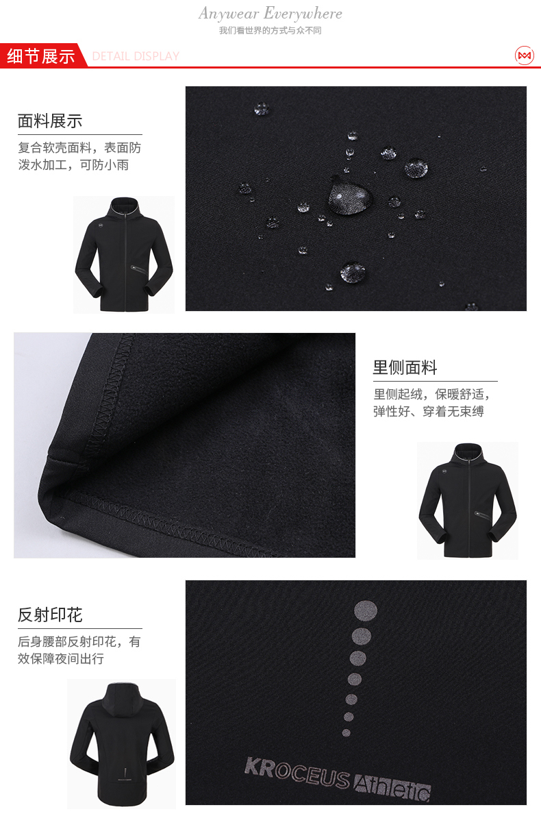 软壳相比于硬壳,软壳具有良好的透气性,伸展舒适性,虽没硬壳那么强的防水功能,但普通的小雨和泼水也基本无惧,应用场景更广泛,适合日常穿着,是一款适合春秋冬三季穿的多功能外套。