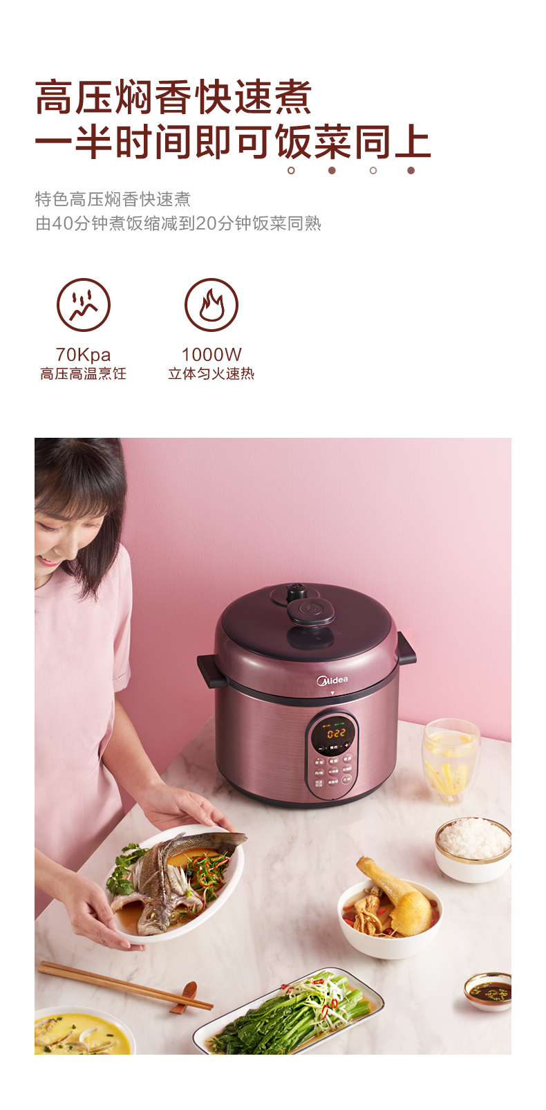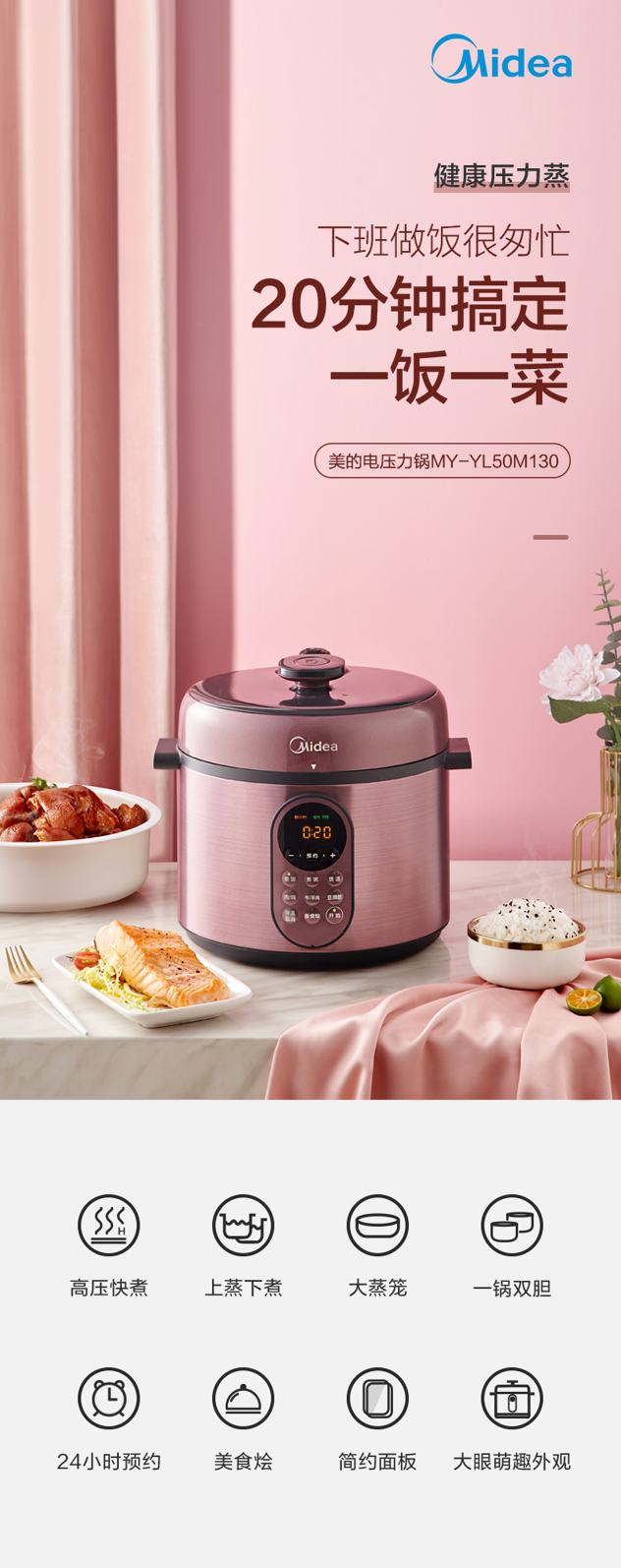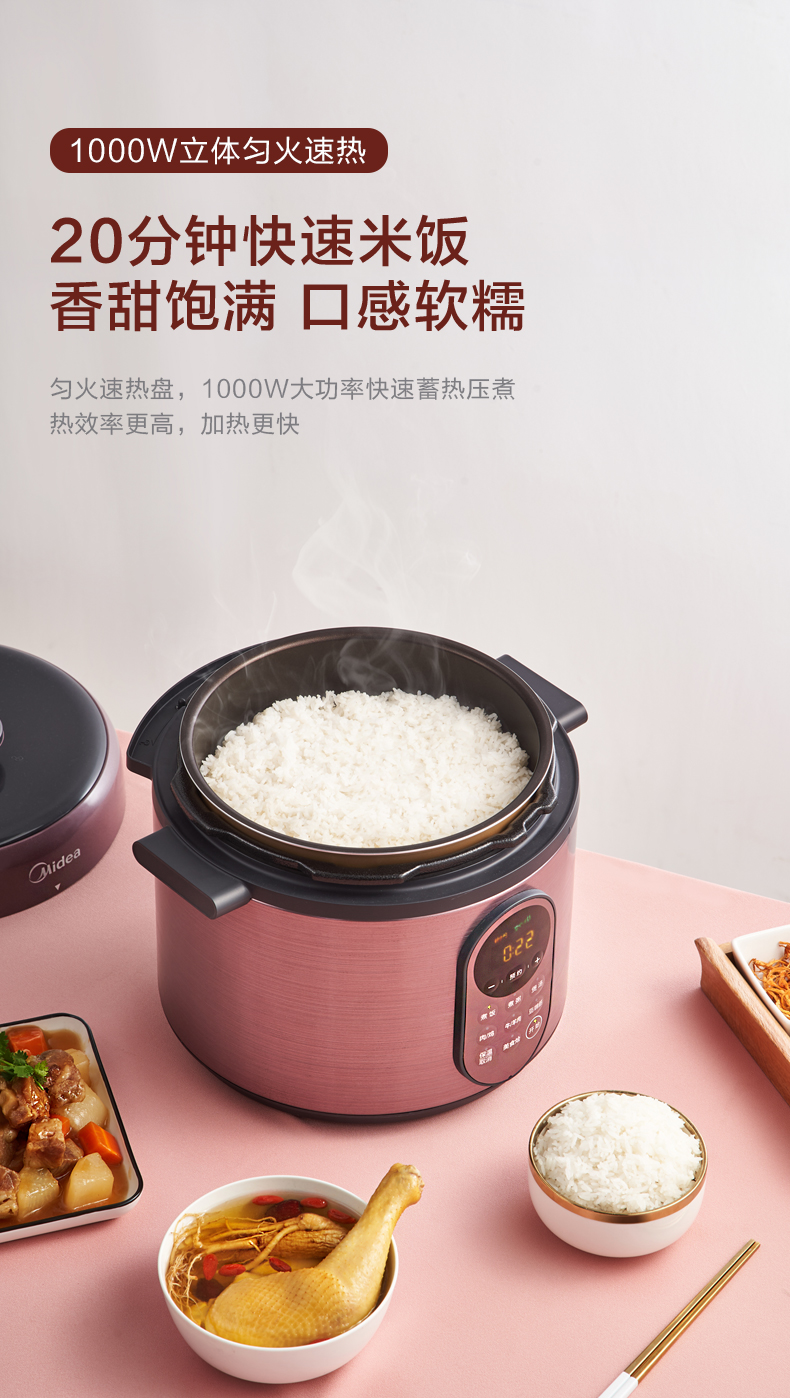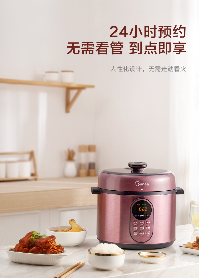 这款美的智能电压力锅,容量为5L大容量,能满足4-5口人使用,一锅双胆,拥有多菜单,24小时预约定时,可拆洗上盖板,开盖收汁,使用方便、省心。