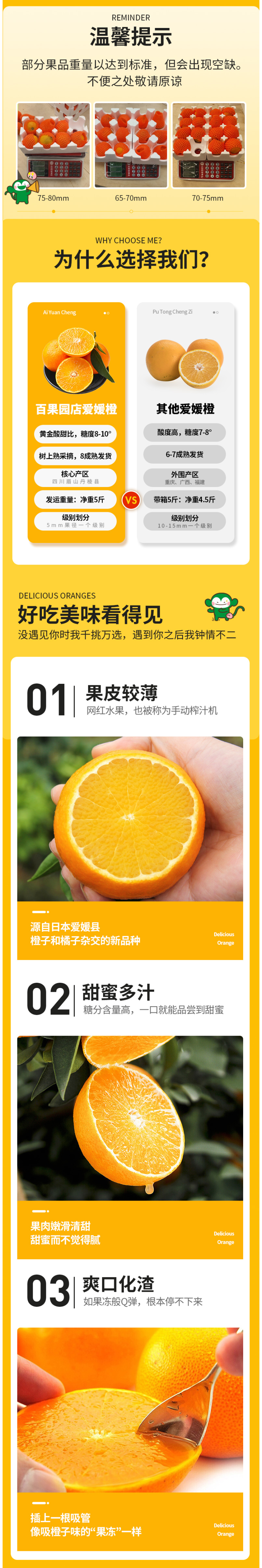 “爱媛38号”杂柑是在日本爱媛县由‘南香’与‘西子香’杂交培育而成,由于其果肉内无核、口感细嫩、完全化渣的特点,甜度高,清香爽口。可以做到免榨,能直接用吸管吸橙子,故而得名外号“果冻橙”。