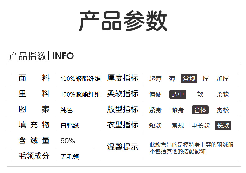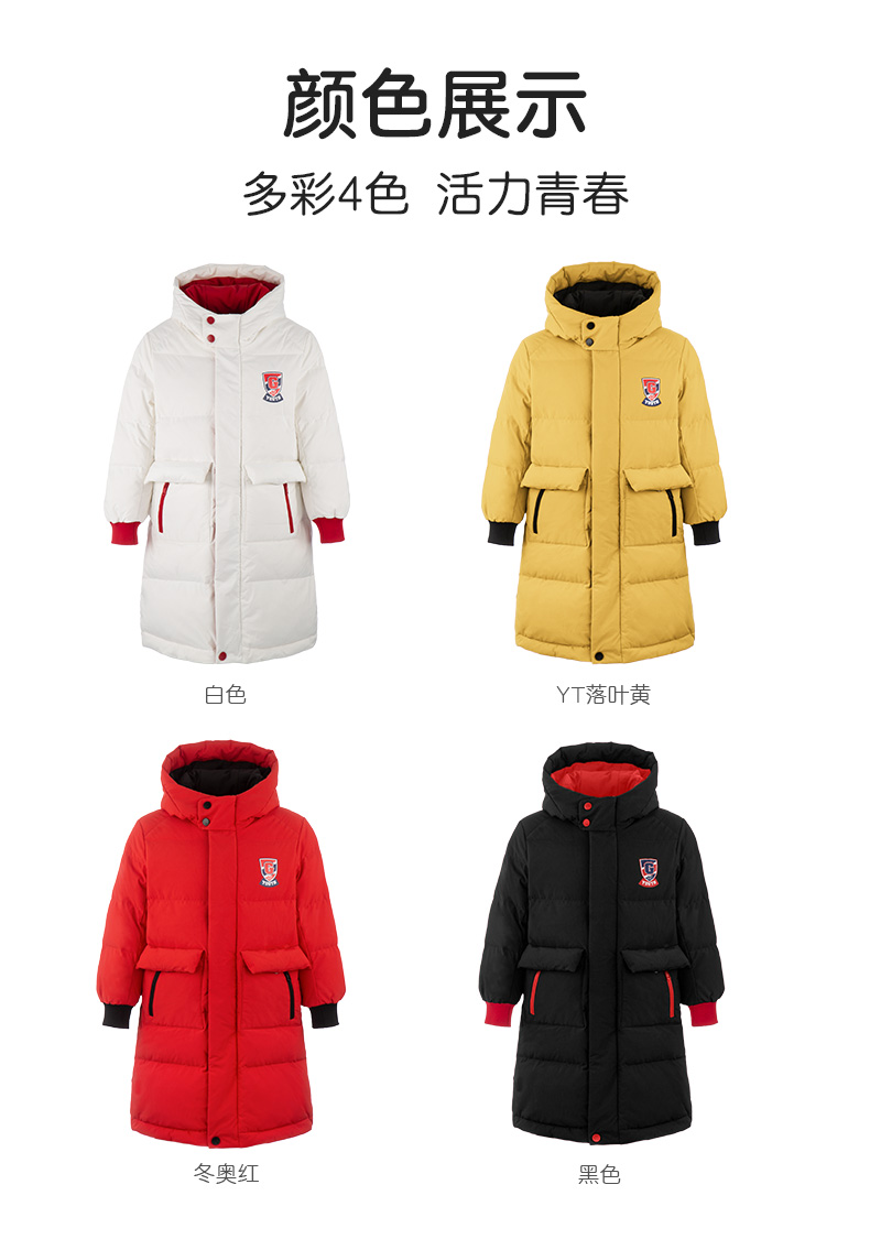 宽松版型,基本不挑身材。连帽过膝款式,袖口为弹性罗纹布设计,不易灌风,进一步提升保暖效果,简约纯色款式,百搭穿着。