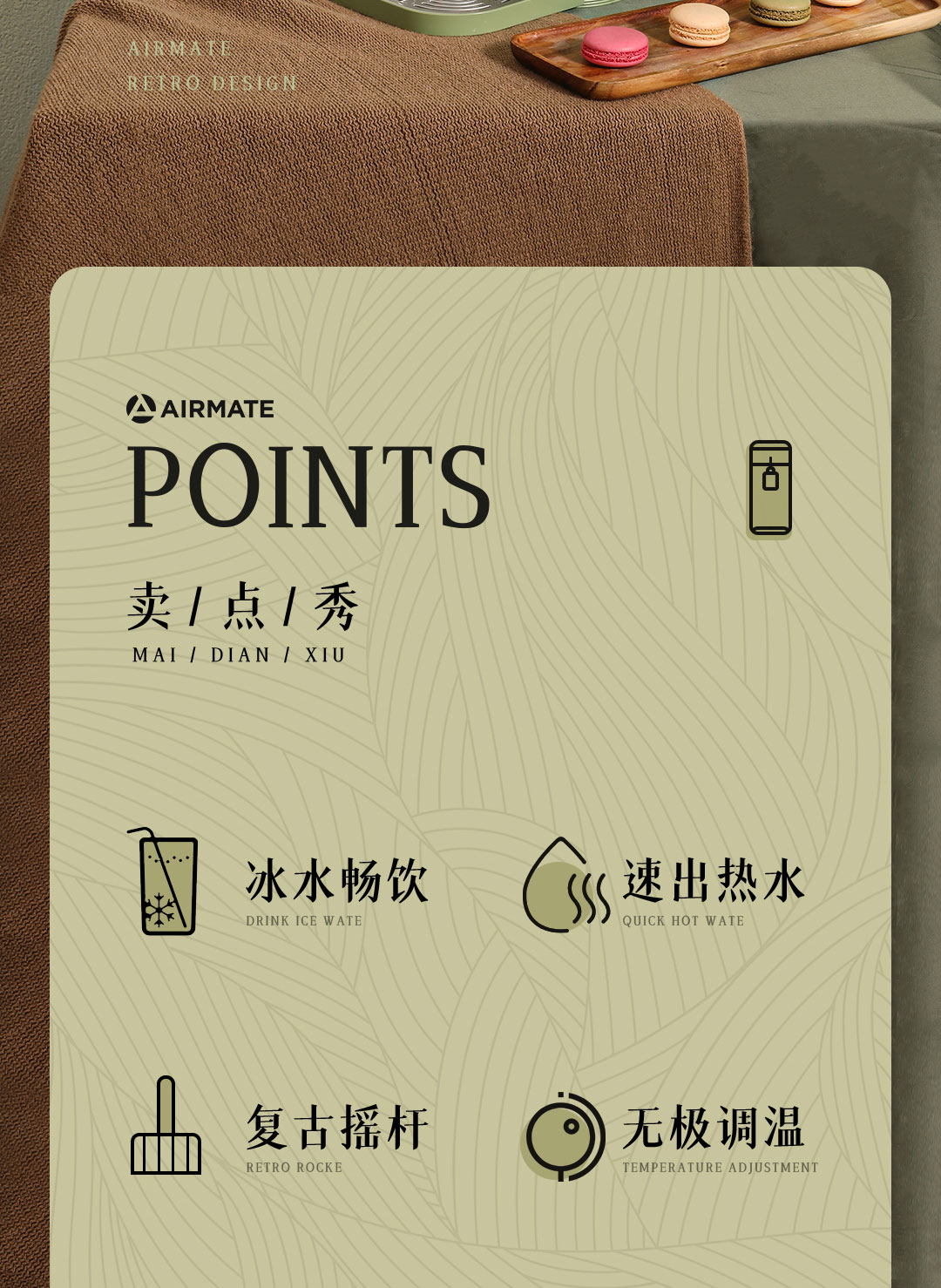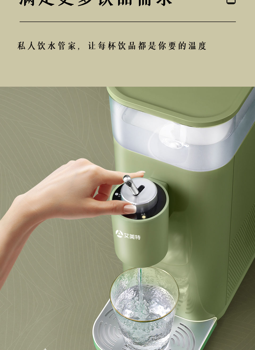 艾美特即热饮水吧,1秒即热,现烧现喝新鲜热水。拥有多档水温可选,泡茶、泡奶粉、泡蜂蜜均可以找到适宜的温度。迷你机身,方便移动,满足厨房,卧室,浴室不同场景需求,磁吸式接水盘,使用方便。