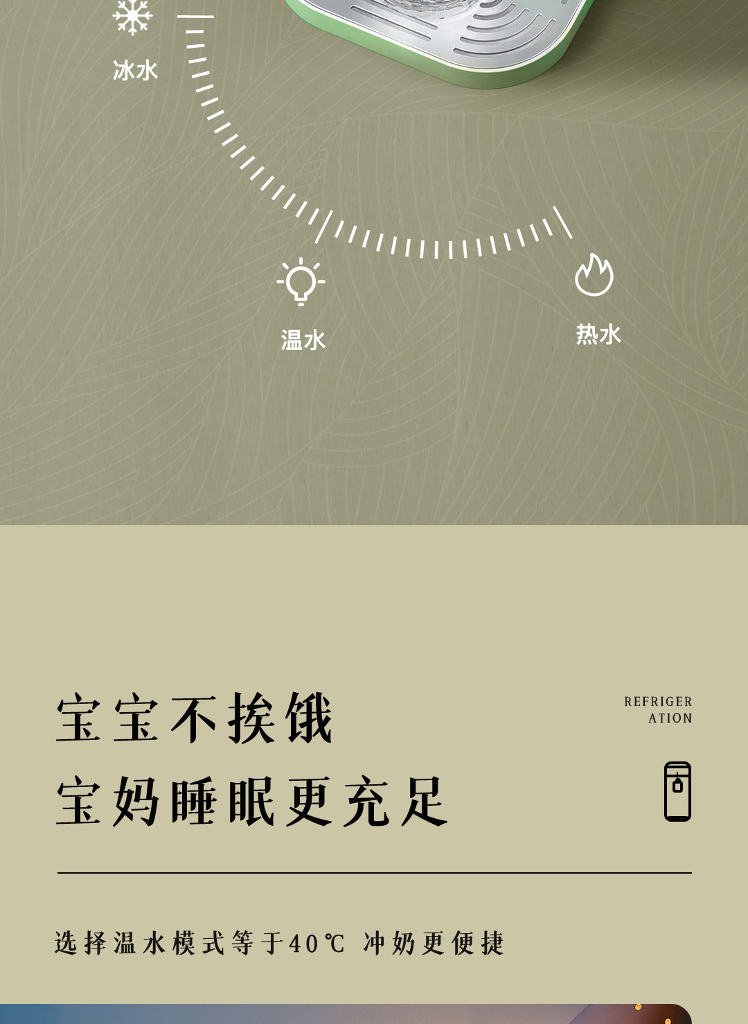即热饮水机的好处,在于快捷、卫生。普通饮水机,要等好长时间热水烧开,即热饮水机,可实现即热即饮,和设定温度的功能,满足日常不同喝水的需求,不用等待,也不用再分别兑着喝了,简单省事。颜值够高,可随意搭配家具摆放。