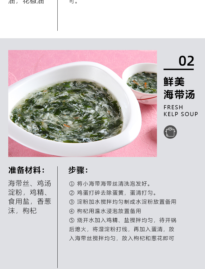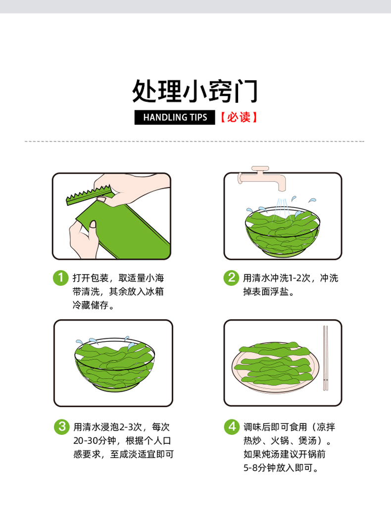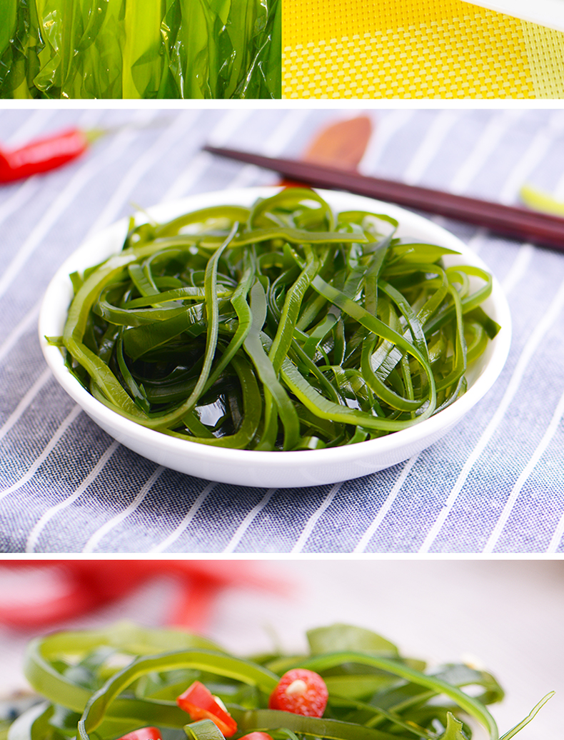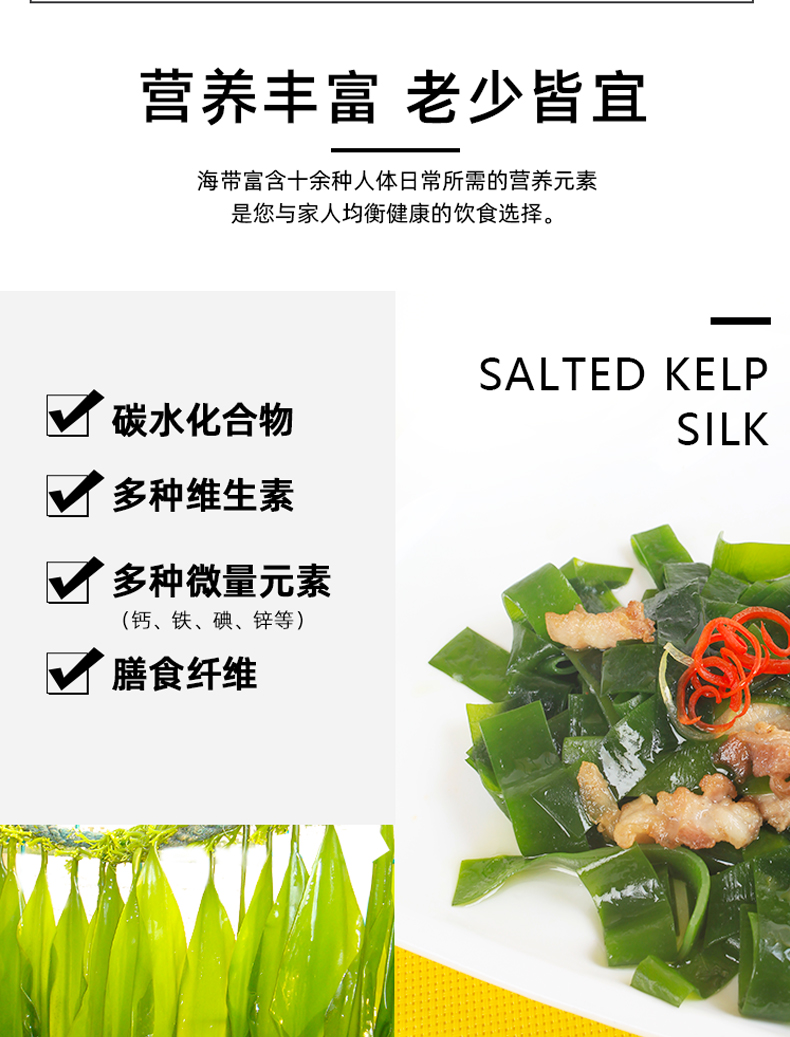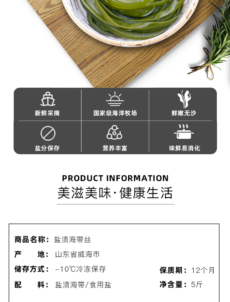 这款海带丝源自国家级海洋牧场,N37°向外8海里,40米深海,海域纯净无污染,海带头是海带比较厚实部分,腌渍保鲜,口感Q弹有嚼劲,拿来凉拌、煲汤都好喝!