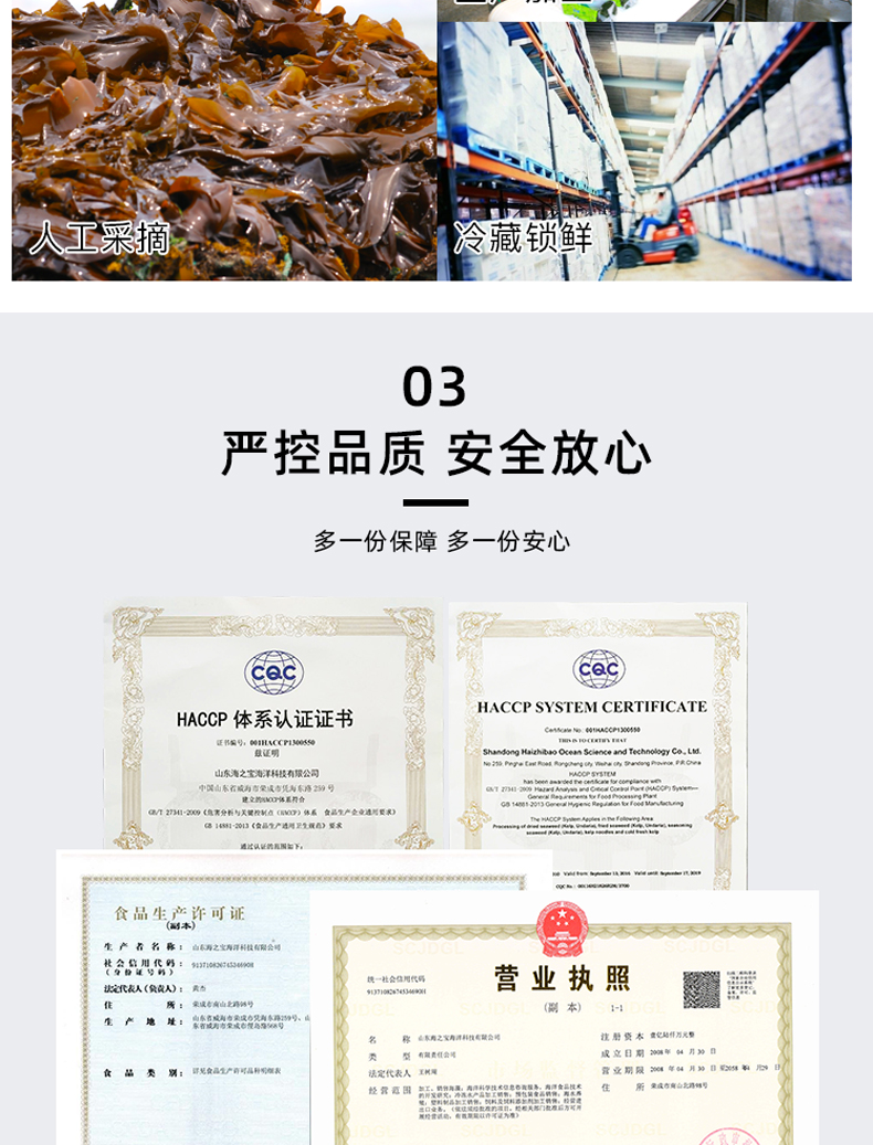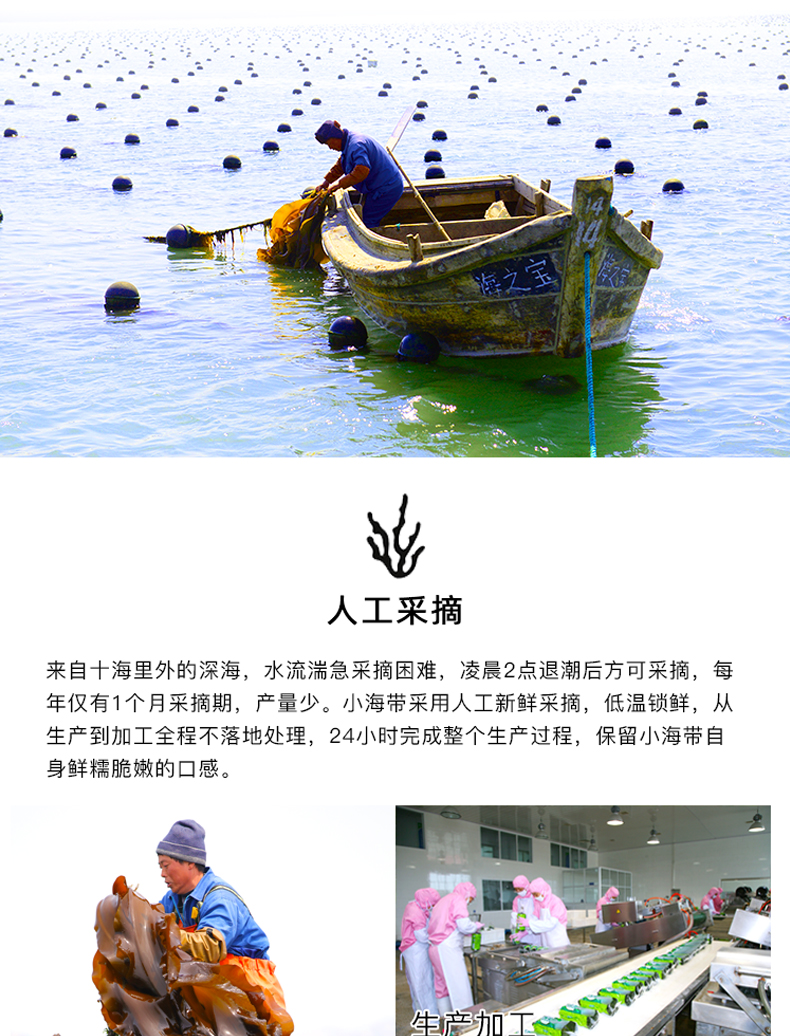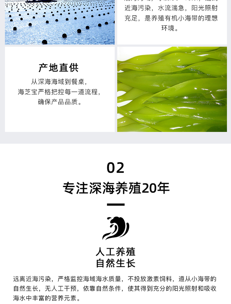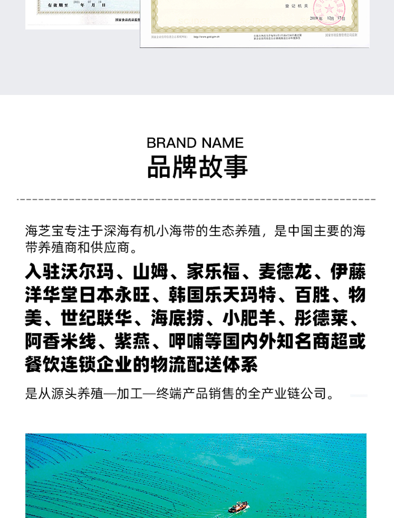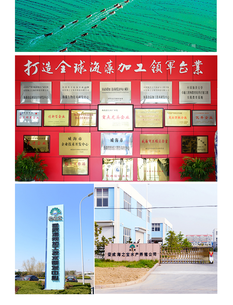 是山东海之宝海洋科技有限公司“品牌”,注册资金16000万,是中国500强企业---成山集团的控股子公司,拥有10万亩最纯净的深海养殖基地,及700余亩海带加工基地,现已开发“海芝宝”深海小海带原生态产品、海带面、即食休闲、鲜焙干品、礼品箱五大系列50余种特色产品。