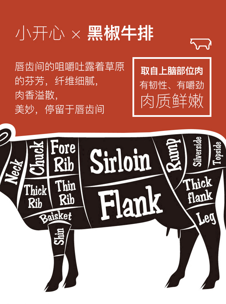 采用澳洲高品质黄金部位牛肉,取自上脑部位的肉,有韧性、有嚼劲,肉质鲜嫩。经SGS等全球领先机构检测,送刀叉和酱包,正规厂家生产,品质可靠。