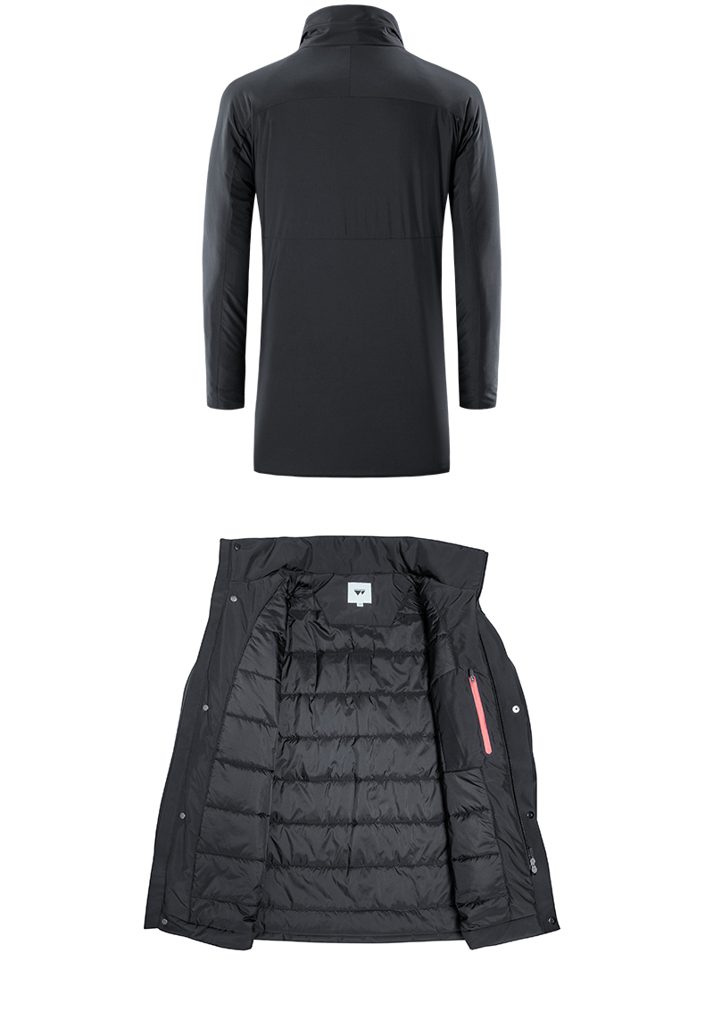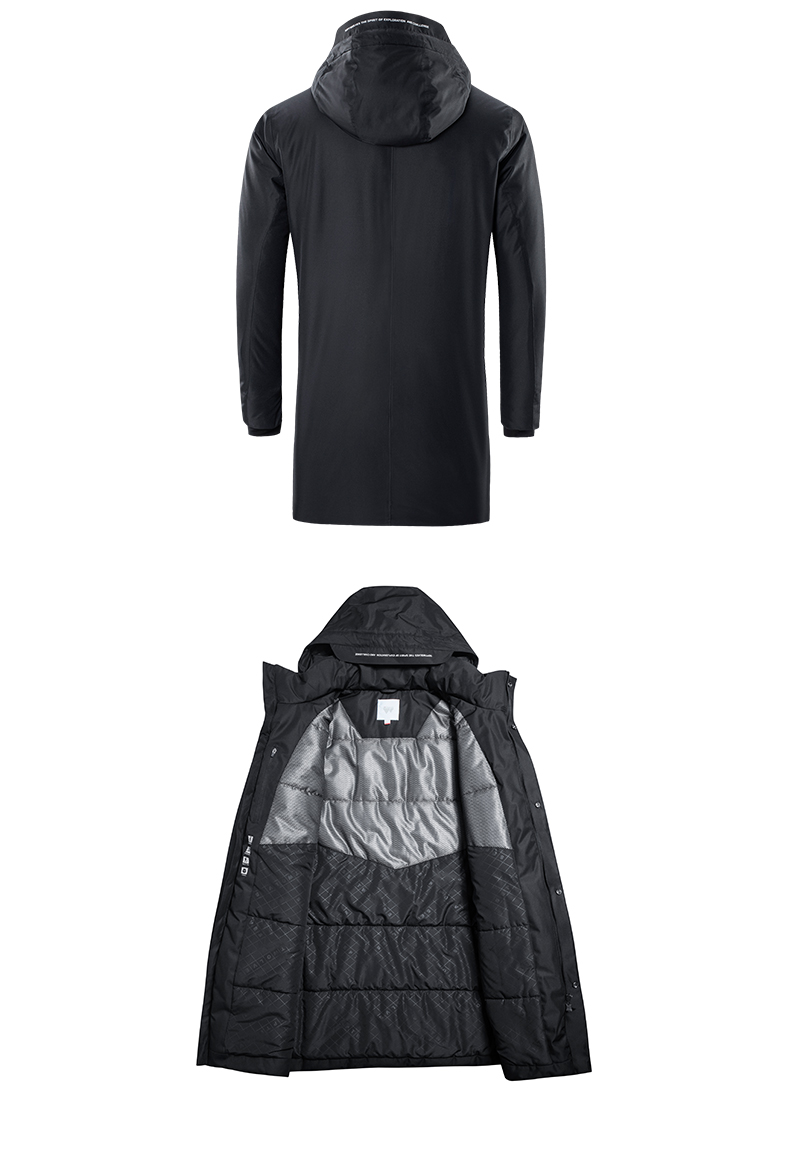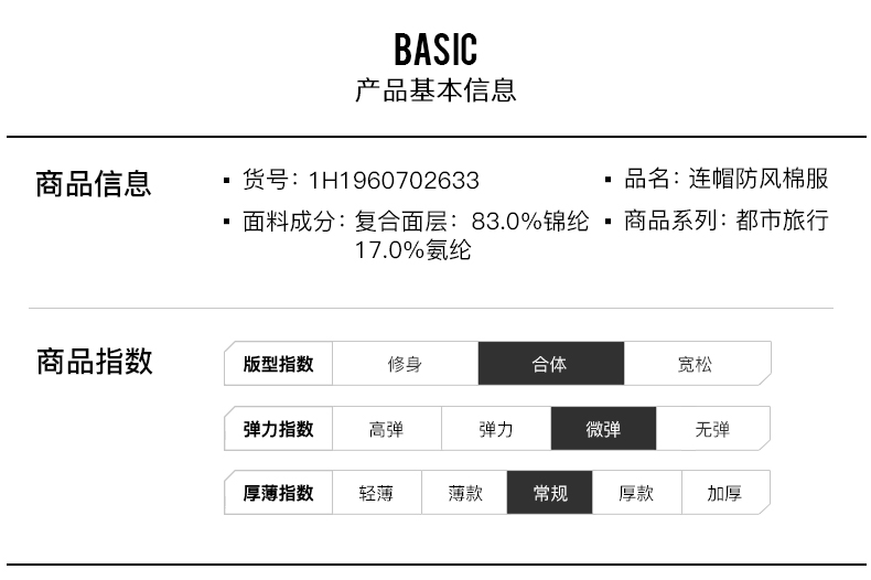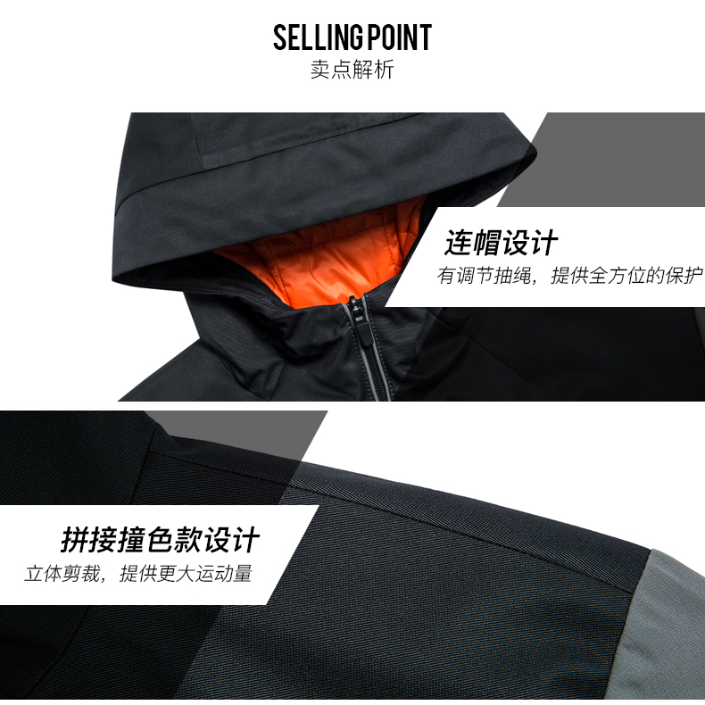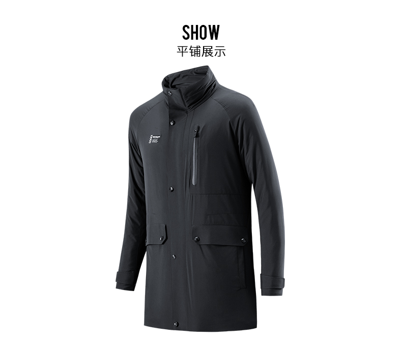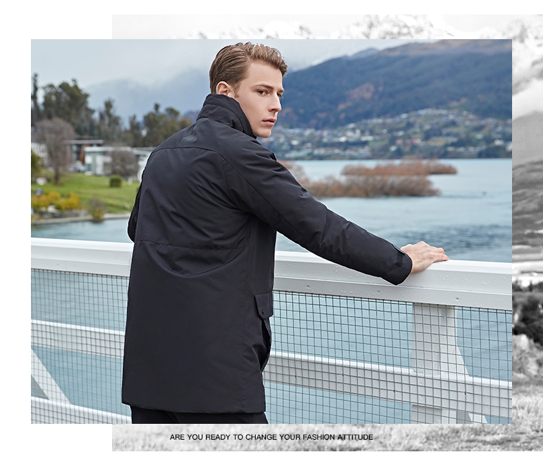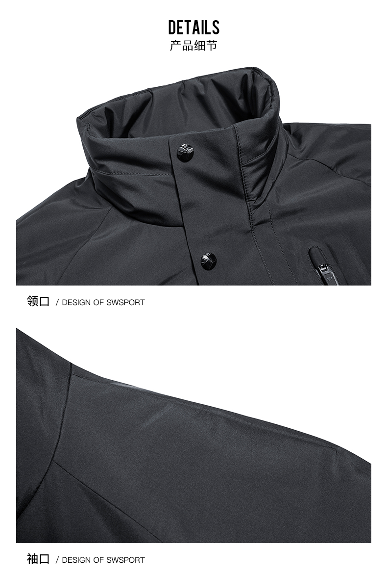 在款式,中长款式设计,下摆超过臀部接近大腿,上身显高显瘦。3D立体剪裁+合身版型,上身更得体不臃肿。半高领搭配防风帽设计,有调节抽绳,可以把脖子整个围住。帽子不需要时,也可拆卸了。