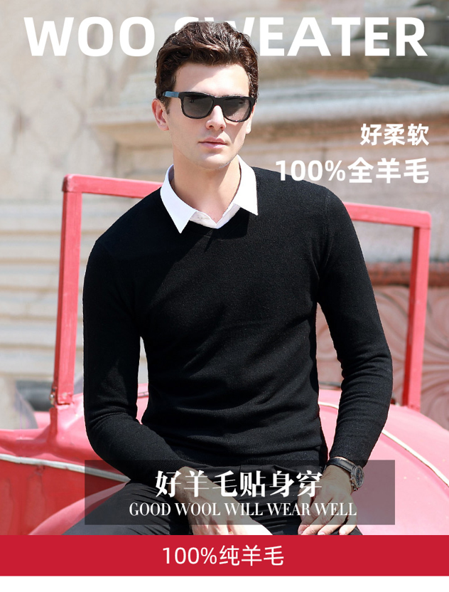 简约纯色款式,整体走线工整平齐,不磨皮肤,也不易起球变形,商务休闲都适合穿。另外提一下,这款只是普通毛衣款式,并不是假两件,模特穿衬衣为了展示效果。