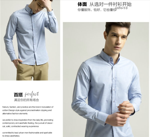 本米男棉麻衬衣,面料成分为70%棉+30%亚麻,领尖带扣设计,典型美式风格,商务休闲两相宜。前门襟做的较普通衬衣稍宽,看上去男子力max,纯爷们气质一览无余。较宽的袖克夫,考究适用,适合搭配西装。成衣整体精致干练,透气性优于普通棉质衬衣,吸湿不粘身,可以从初春一直穿到夏天。