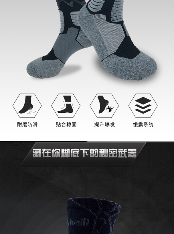 这款篮球袜全面融合强效排汗面料,脚面保持干爽,并线及网布毛线柔软面料,巧妙缓震功能与动态足弓支撑,增加弹性和恢复性,为你的双脚缔造卓越舒适感与强力减震功能,加长型袜筒降低对脚部的压力损伤问题,立体编织袜口高弹无勒痕,减少挤压点及刮伤的发生,并稳定贴合双足,助你制霸赛场。