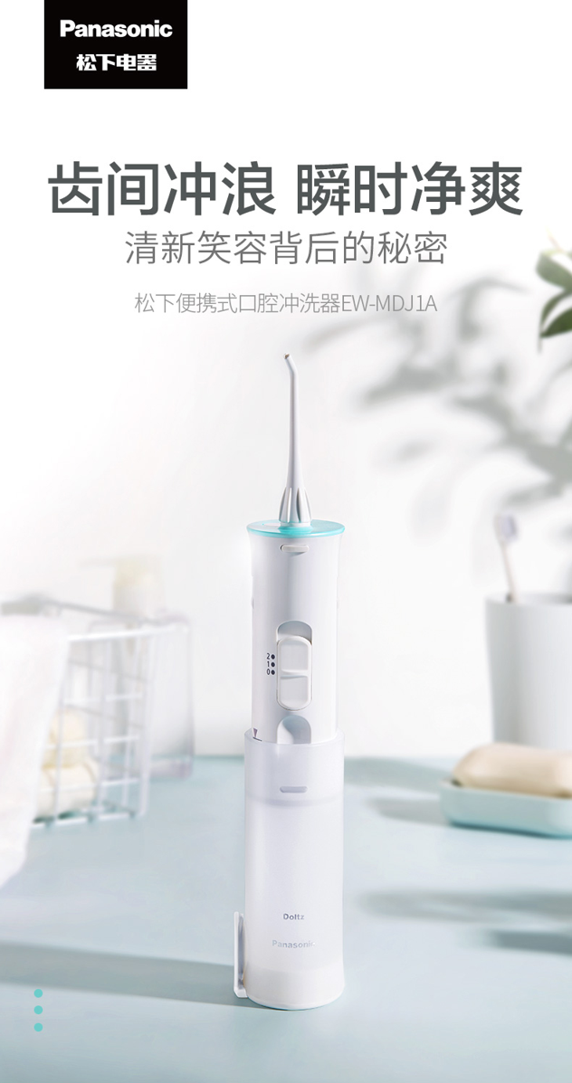 这款松下 EW-MDJ1A 便携冲牙器,通过高频脉冲水线,能轻松祛除牙齿和齿间的食物残渣,达到改善口腔环境、清除口腔炎症,去除牙菌斑,预防牙结石,保护口腔健康的目的。