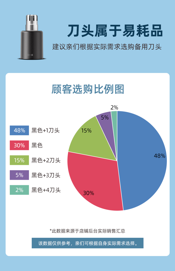 内置浮动双刃刀头,在高速旋转过程中,360°全向捕捉从刀头狭缝进入的多倍鼻毛,切剃无拉扯感,鼻腔内再难处理的鼻毛亦能快速剃净。