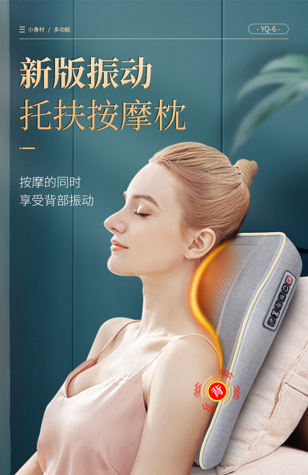 这款按摩器专为缓解肌肉酸胀,放松身体设计,黄金的小S曲面,充分贴合身体,躺靠两用设计,舒缓释压,16个按摩头交替按摩,帮助放松肩部、颈椎和腰椎,自带红点热敷功能,热敷和按摩双管齐下,畅享按摩,外部耐磨耐脏棉麻布套,内里高回弹太空记忆棉,耐用耐造,使用省心。